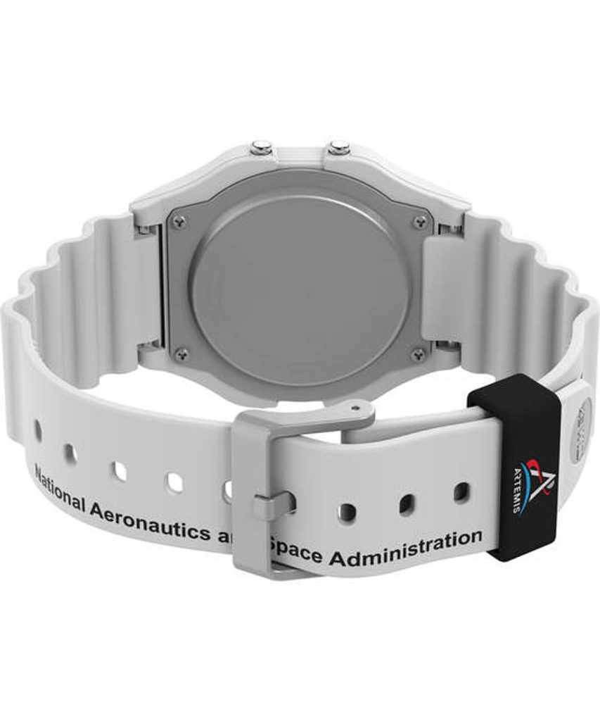 Pouzdro hodinek o velikosti 36 mm je vyrobeno z kvalitní barevné pryskyřice. Šedočerný číselník v retro stylu je doplněn tématickým logem společnosti NASA. Uvnitř něj je umístěn digiální číselník s Indiglo® podsvícením, který disponuje funkcí alarmu, ukazatele data, dne v týdnu, měsíce a stopek. Vše chrání akrylové sklíčko.