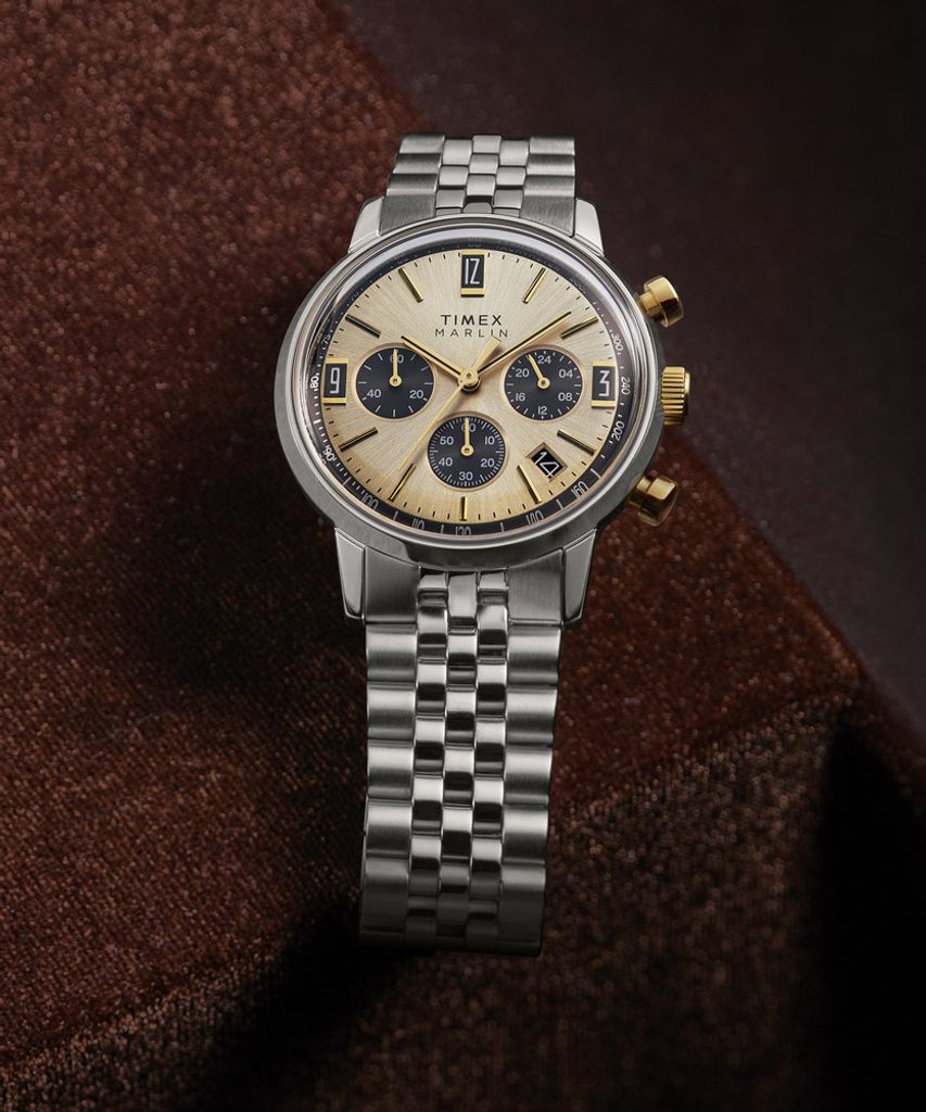 Model TIMEX TW2W60100UK z elegantní řady Marlin je historicky prvním chronografem z této řady a zároveň prvním modelem, ve kterém nepracuje automatický strojek (nebo strojek s manuálním nátahem), ale spolehlivý quartz.