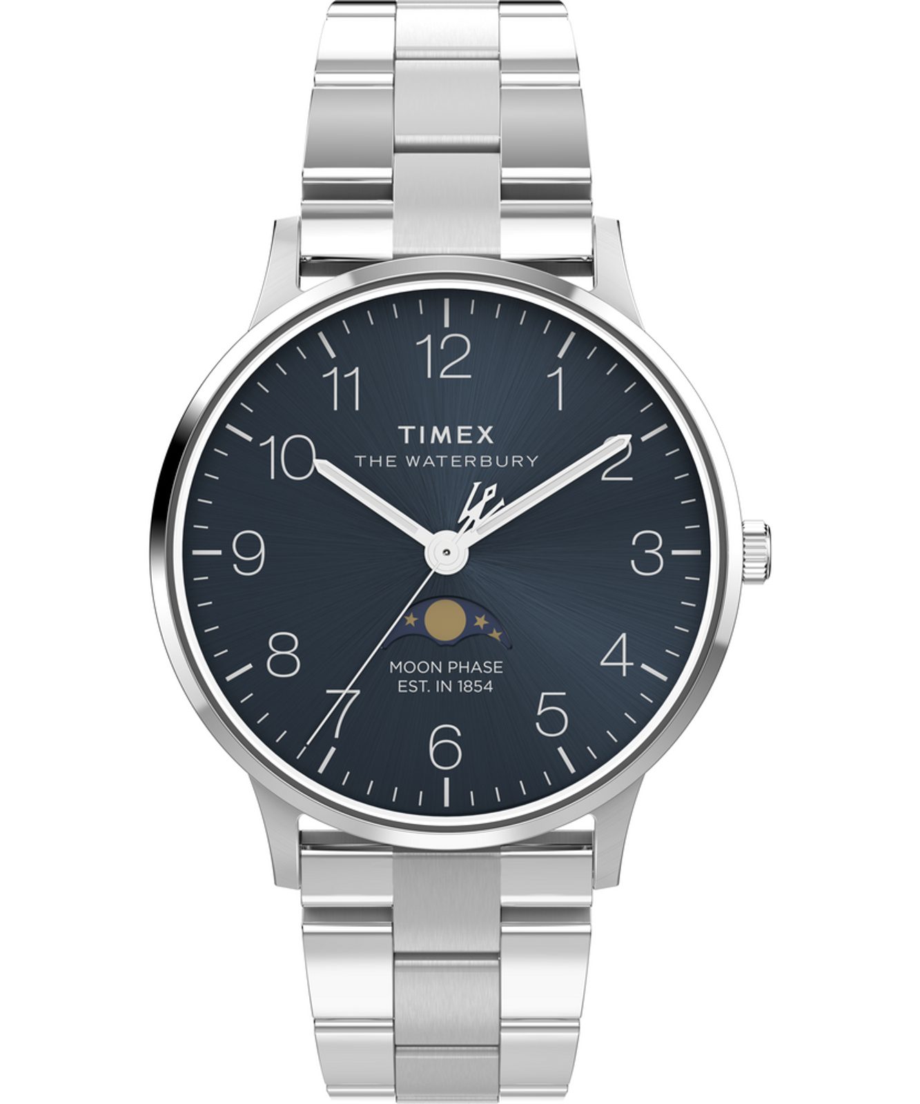 Pyšní se velmi přehledným číselníkem bez datumového okénka a s kontrastními indexy na sytém, tmavě modrém podkladu s efektem slunečních paprsků. Zajímavým ozvláštněním tohoto modelu je ukazatel měsíční fáze umístěný nad šestou hodinou, který dobře vyvažuje logo Timexu na druhé straně a tvoří tak příjemnou symetrii.