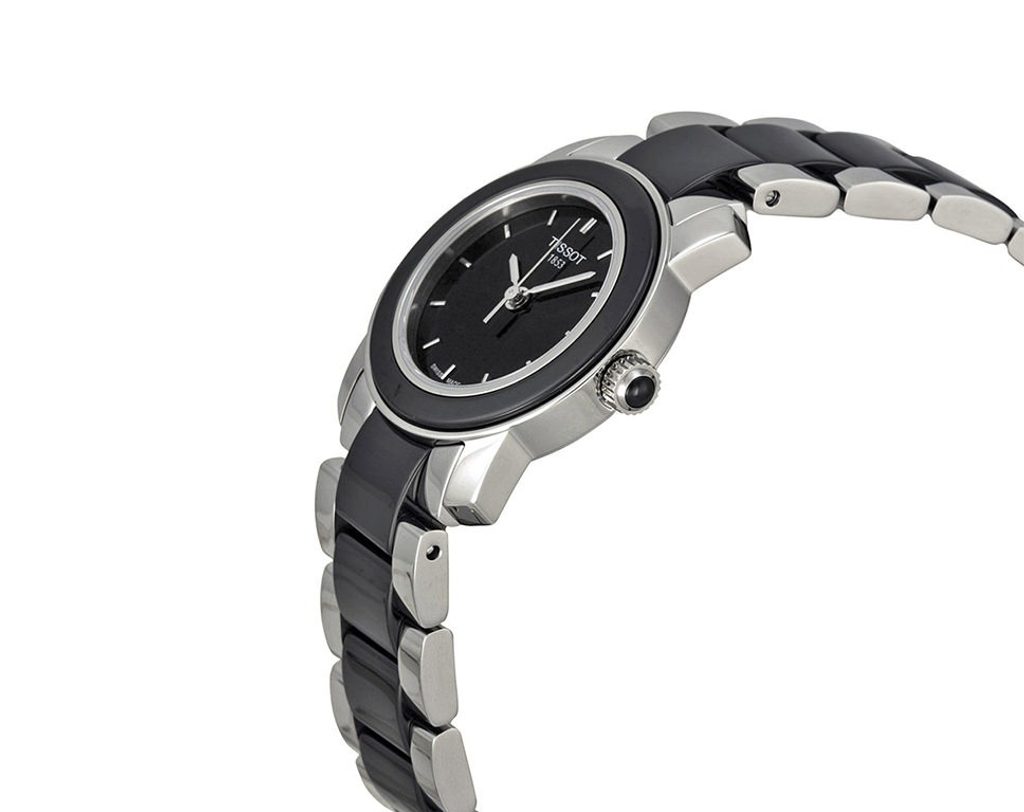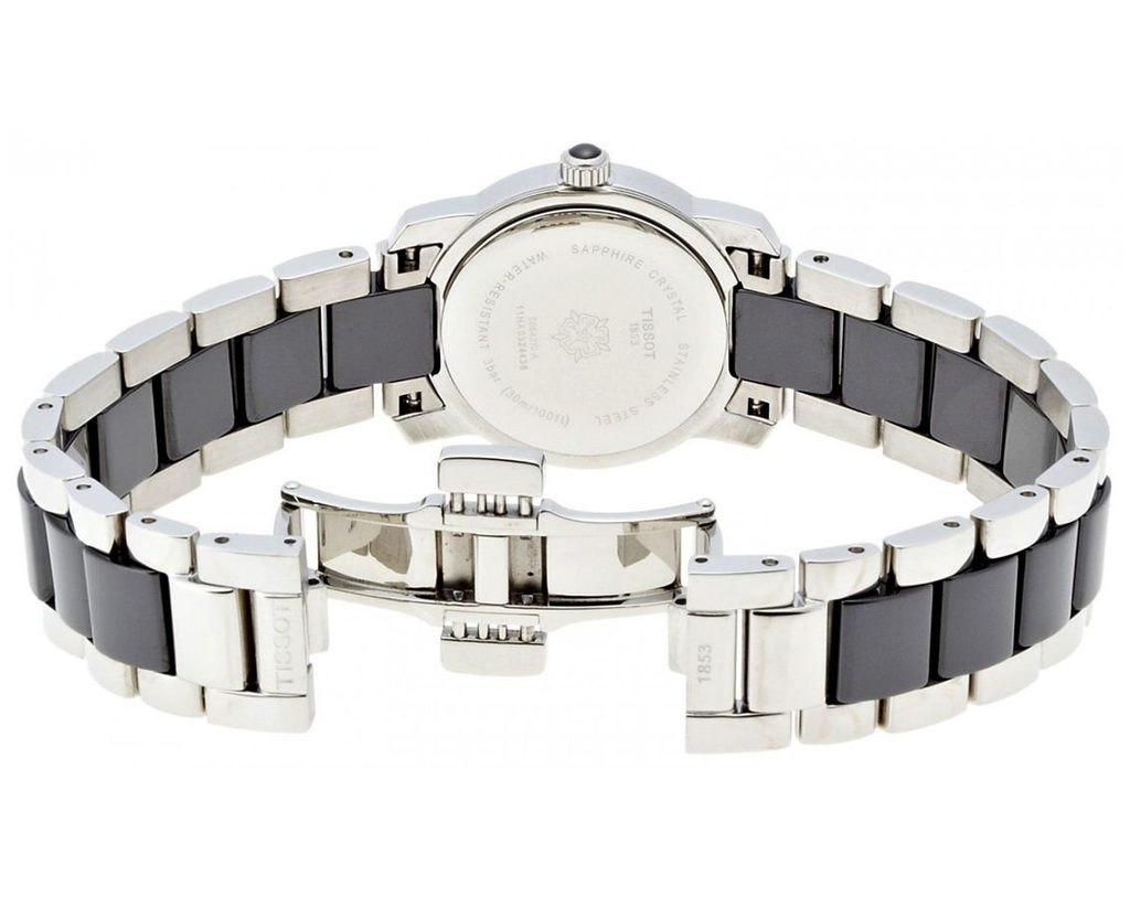 Hodinky Tissot T0642102205100 pohání švýcarský quartzový strojek ETA F03.111 se třemi kameny. Pouzdro je vyrobeno v kombinaci ušlechtilé oceli a keramiky, stějně jako jejich tah. Elegantní, dokonale přehledný číselník je chráněn safírovým sklíčkem, majitelka se tedy nemusí bát jeho poškrábání.