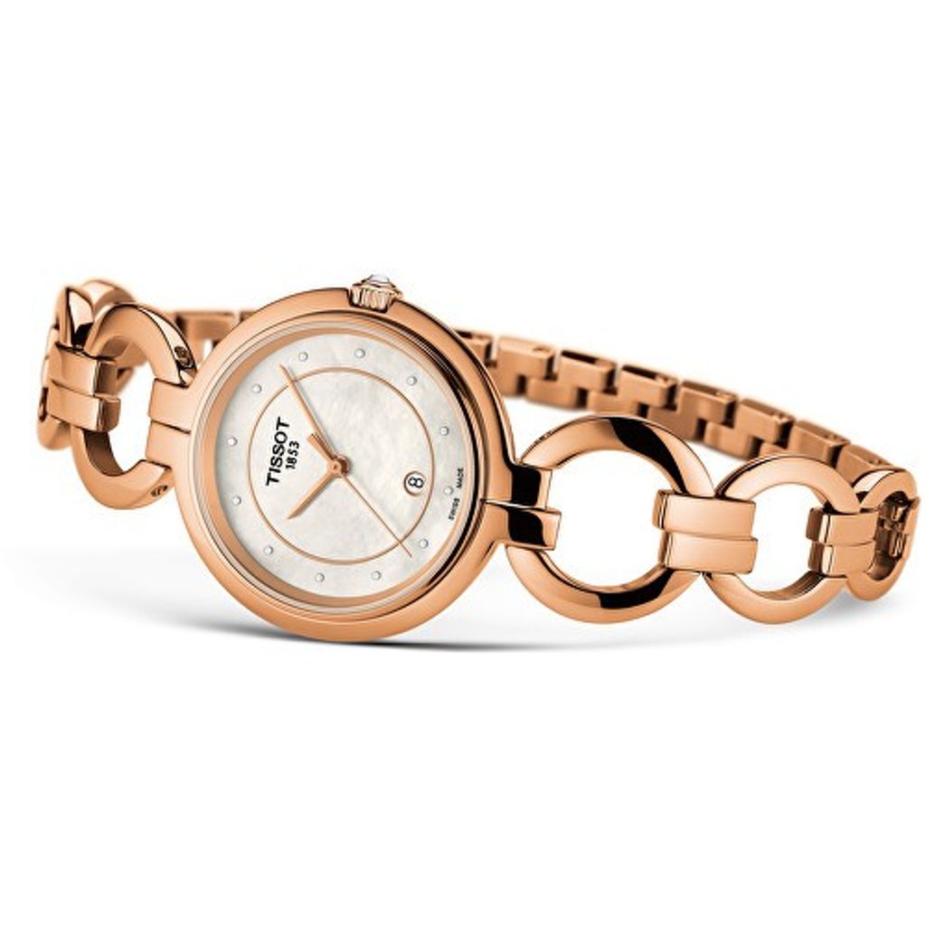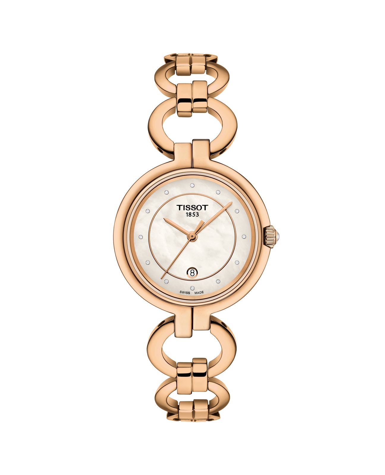 Dámské hodinky Tissot Flamingo T094.210.33.116.01 jsou dámské elegantní hodinky z řady T-Lady, které vás okouzlí svým minimalistickým vzhledem a precizním zpracováním. Perleťový ciferník chrání safírové sklíčko, jež je odolné vůči poškrábání. Ciferník na sobě navíc obsahuje 12 diamantů o ryzosti 0,015 karátů.