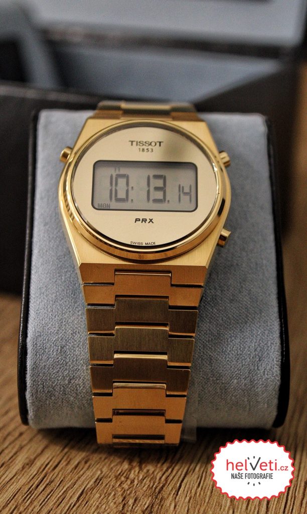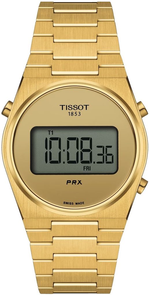 Hodinky Tissot PRX Digital jsou harmonickým spojením ikonického designu hodinek PRX z roku 1978 a digitálního quartzového strojku Tissot (Calibre 4012). Spojují tak retro estetiku s moderním nádechem. Hodinky PRX Digital, které jsou k dispozici v 35mm a 40mm variantě a v různých barvách, vyhoví všem zápěstím, zatímco množství funkcí uspokojí všechny potřeby.