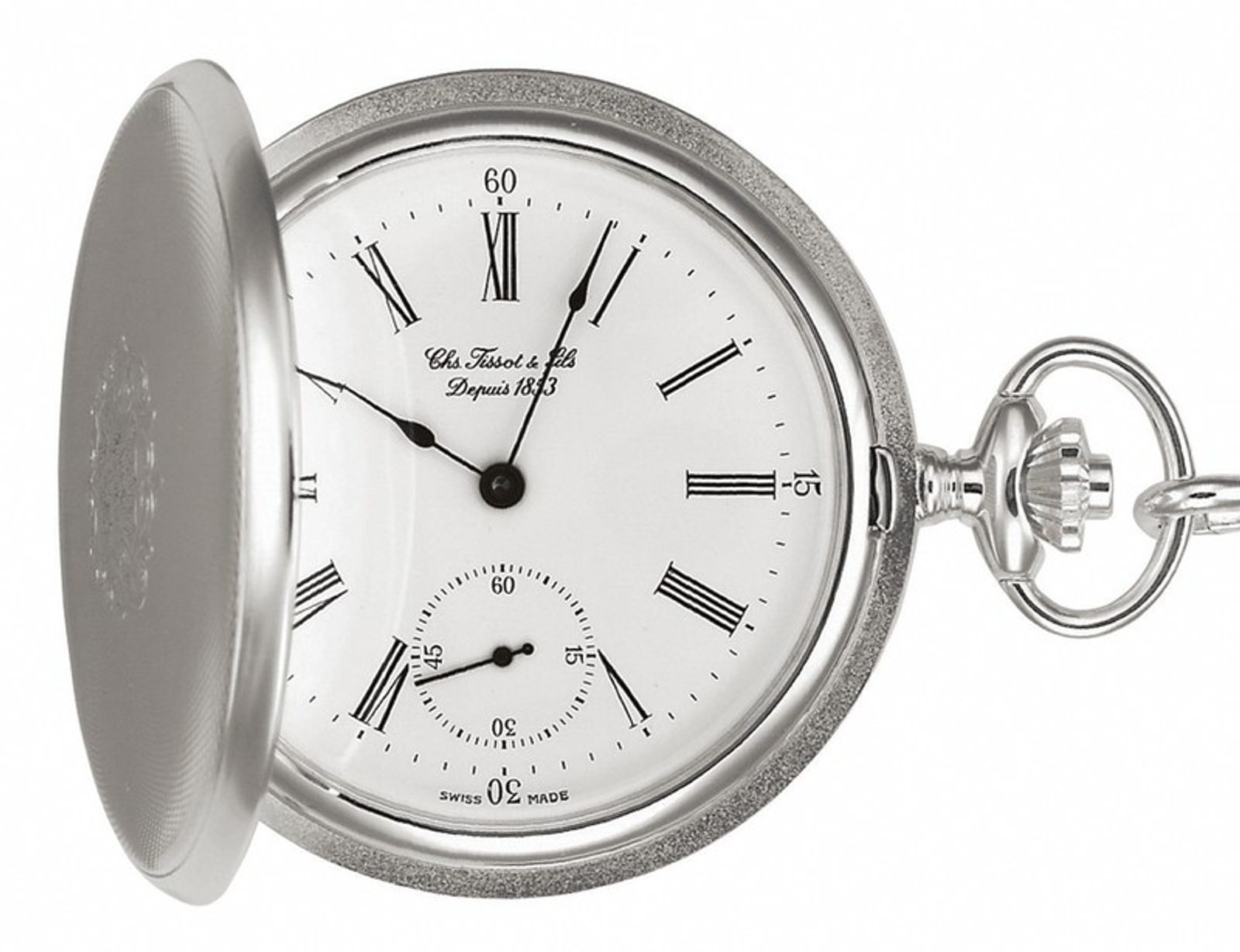 Hodinky Tissot Savonnette Mechanical T83.1.452.13 zaujmou elegantním vzhledem inspirovaným historickými modely kapesních hodinek a přehledným ciferníkem bílé barvy.