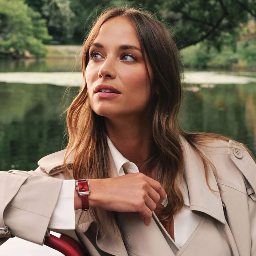 Pouzdro ve tvaru obdélníku je vyrobeno z ušlechtilé oceli a doplněno červeným koženým řemínkem s trnovou sponou. Charakteristickým znakem pouzdra je i korunka ve tvaru šestiúhelníku s logem značky. Designově čistý a elegantně provedený číselník červené barvy s efektem slunečního brusu je chráněn safírovým sklem, jež je vysoce odolné vůči poškrábání.