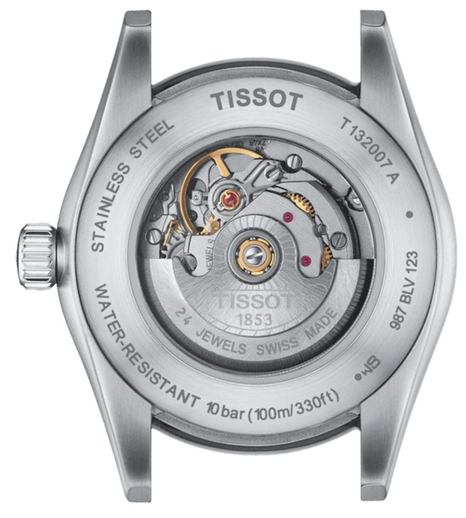 Model Tissot T1320071133600 je poháněn mechanickým švýcarským strojkem s automatickým nátahem ETA Powermatic 48.111 se 24 kameny. Mimo funkce času je vybaven o ukazatel data. Datumovku nalezneme u indexu 3. hodiny. Strojek disponuje rezervou nátahu až 48 hodin. Vlásek setrvačky tohoto strojku je vyroben ze slitiny Nivachron, která je odolnější vůči magnetickému poli a teplotním změnám a má vliv na lepší přesnost hodinek.