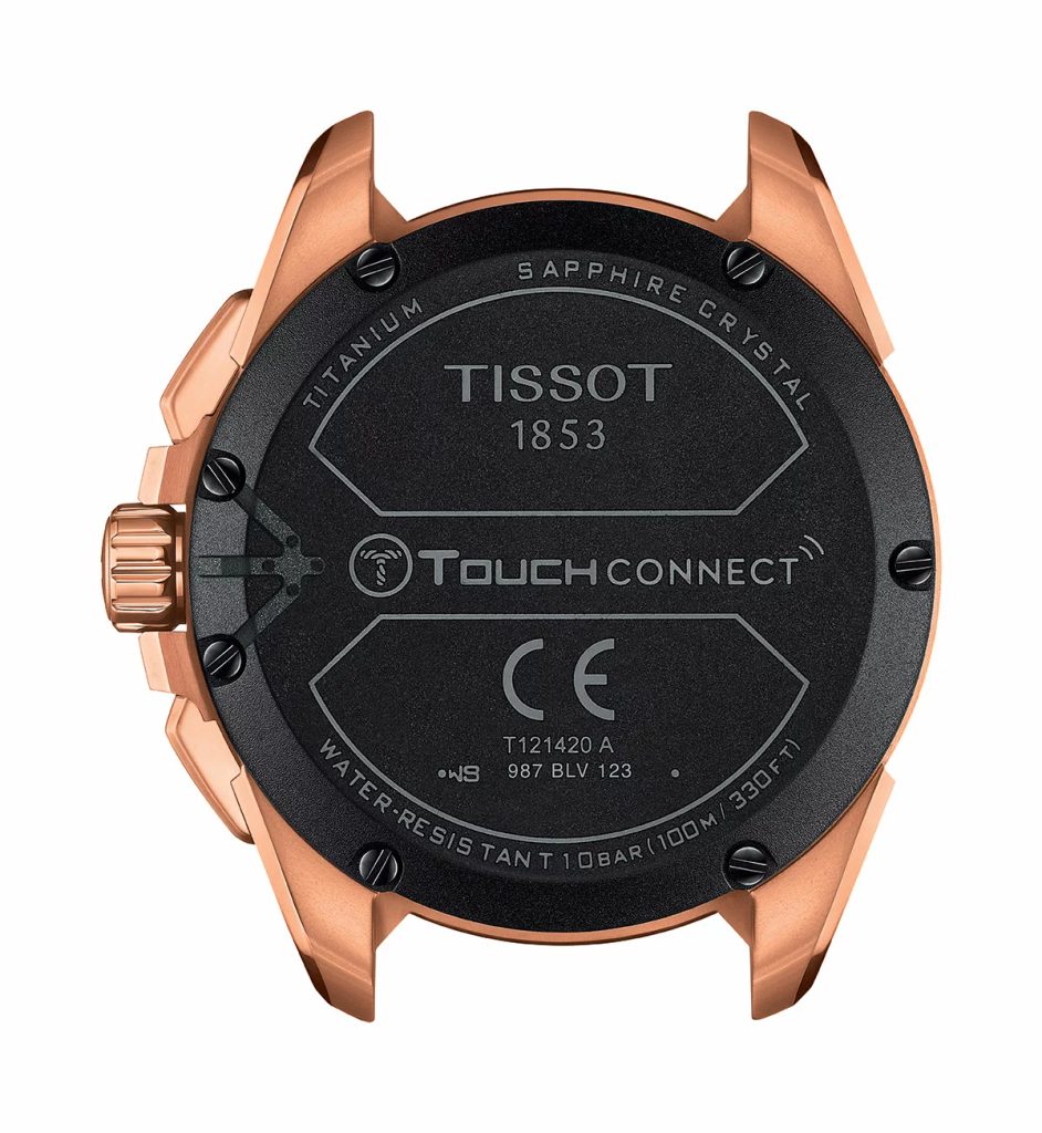 Pouzdro sportovně laděného modelu Tissot T1214204705106 je vyrobeno z titanu v úpravě PVD zlaté barvy a skrývá v sobě švýcarský strojek ETA E32.001, který je poháněný světelnou energií. Majitel tak nemusí řešit výměnu baterie a nemusí se obávat, že hodinky přestanou fungovat v tu nejnevhodnější chvíli. Strojek disponuje funkcemi, jako kalendář, alarm, stopky či duálním časem, při outdoorových aktivitách pak přijde vhod hlavně kompas, barometr, nebo výškoměr. K pohodlnějšímu ovládání všech dostupných funkcí, zobrazených na kombinovaném číselníku, pak přispěje safírové dotykové sklíčko. K odolnosti hodinek přispívá taky nepoškrabatelná keramická kompasová luneta s luminiscenčními body.