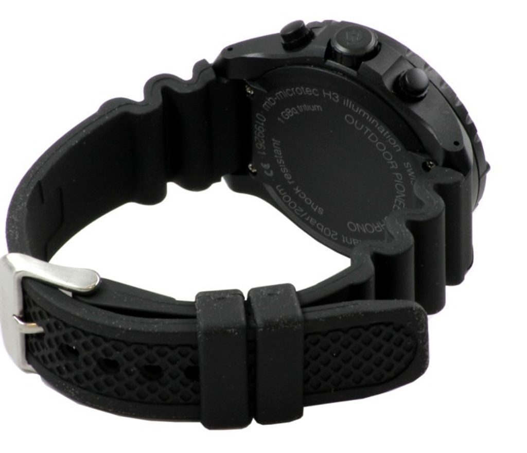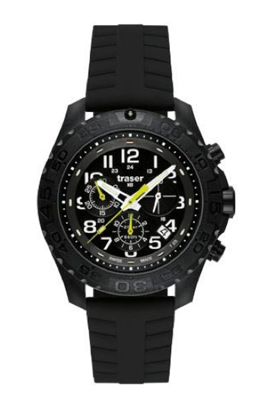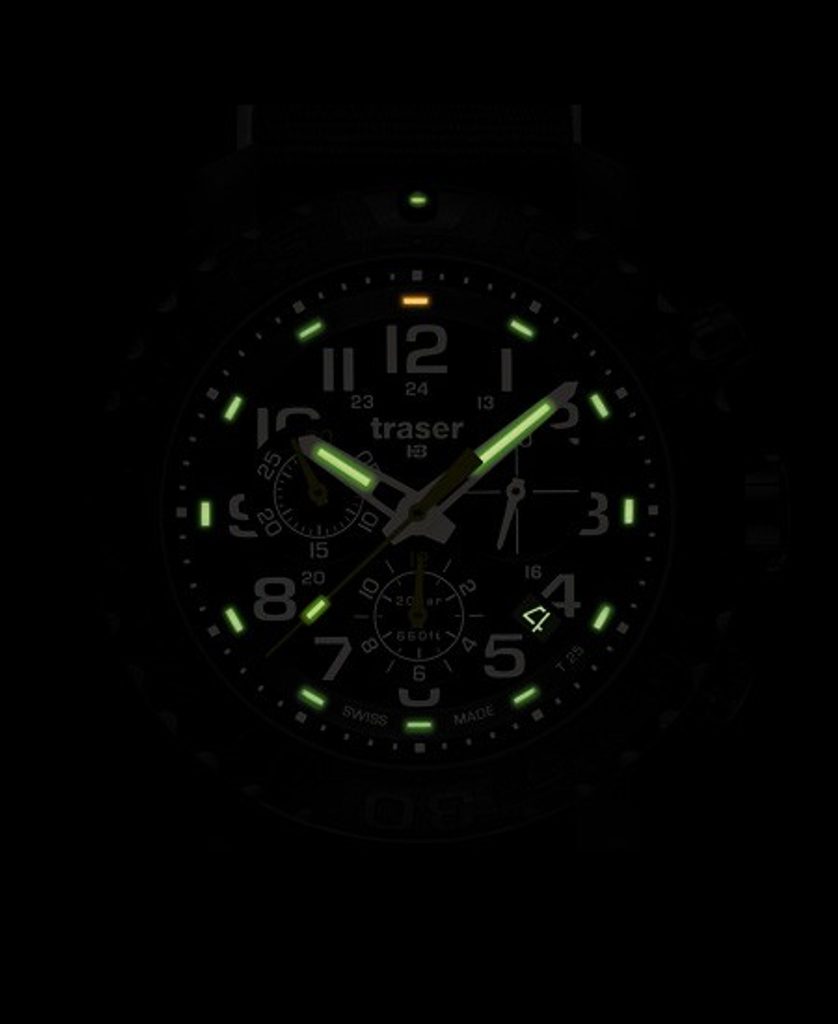 Pánské hodinky Traser Outdoor Pioneer Chronograph jsou žhavou novinkou roku 2014. Pouzdro hodinek je vyrobeno z polyamidu tvrzeného skelným vláknem. Jedná se o velmi lehký, ale zároveň odolný materiál. Velkou předností hodinek je vodotěsnost 20 atmosfér (200 m) a zajímavostí pak nová datumovka, jejíž pozadí je osvětleno technologií trigalight, takže na ni vždy uvidíte. Hodinky disponují minerálním sklíčkem K1 (tvrzeným), váží pouhých 77 g a stopky.