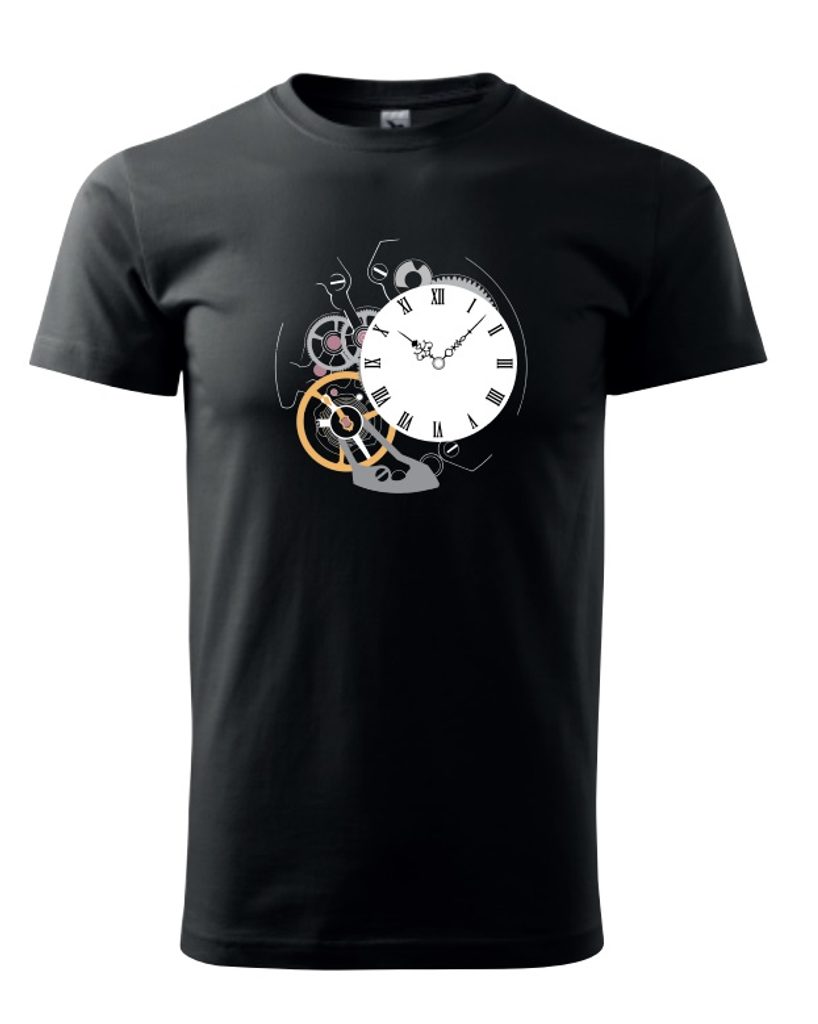 Černé triko s hodinkovým motivem strojku Unitas. Střih trika je Unisex, takže bez obav padne jak mužům, tak ženám. Potisk je vyveden digitálním tiskem, který je prodyšnější a kvalitnější než běžný potisk. Triko je vyrobeno ze 100% bavlny.