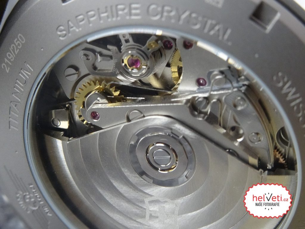 Pouzdro je vyrobeno z titanu a na elegantnosti modelu přidává dokonale zpracovaný kožený řemínek světle hnědé barvy. Aby vaše hodinky zůstaly dlouho jako nové a odolaly případným pádům a ostrým hranám, dostaly safírové sklíčko. To je navíc potaženo třema vrstvami antireflexní úpravy pro lepší čitelnost i za ostrého slunce. Nezaostávají však ani po funkční stránce – luminiscence, stopky, telemetr, datumovka, vodotěsnost 10 ATM a průhledné dýnko, kterým můžete pozorovat krásu, plynulost chodu a dokonalost strojku ETA Valjoux 7750.