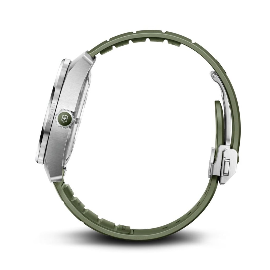 Pánské hodinky Victorinox z modelové řady Concept One Automatic s označením 242058 - novinka roku 2026. Jejich pouzdro je vyrobeno z ušlechtilé oceli AISI 316L, šroubovací korunka a antireflexní safírové sklo. Tento model má vertikálně provedený kartáčovaný číselník. Luneta se saténovým povrchem je ve stylu slunečního brusu, s leštěnou vnitřní částí a vnitřním šikmým šestiúhelníkovým tvarem, je vybavena ochranou proti poškrábání a doplňuje tak skvěle geometrii celého pouzdra.