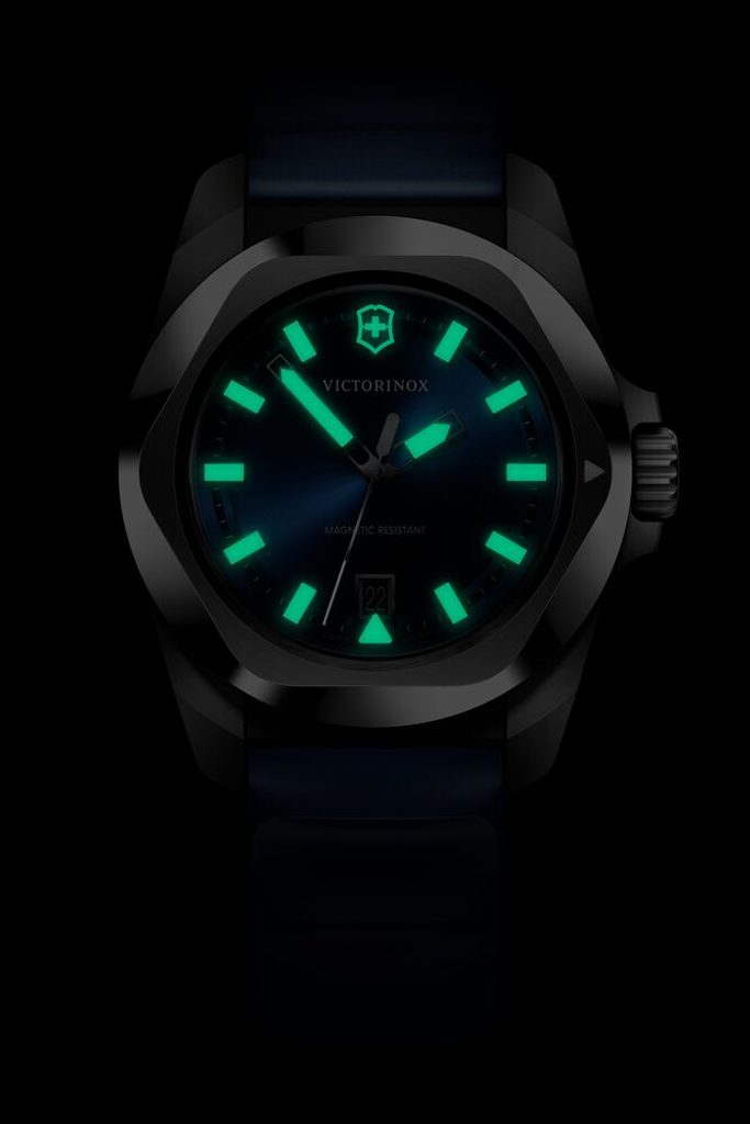 Model Victorinox I.N.O.X. se řadí mezi sportovní hodinky s velmi minimalistickým a dobře čitelným číselníkem.
