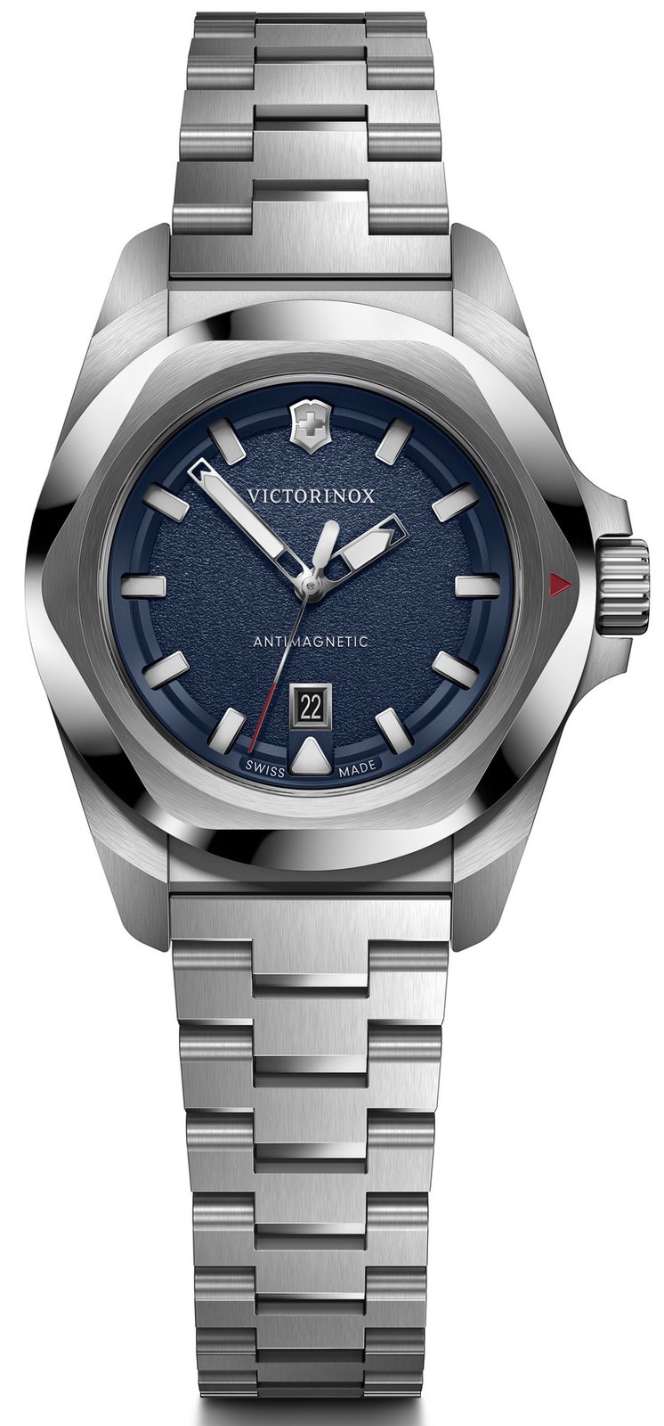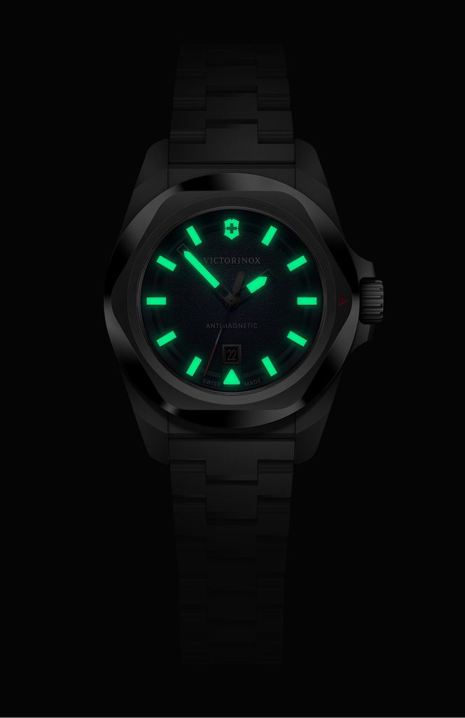 Dámské švýcarské hodinky Victorinox z modelové řady I.N.O.X. s označením 242038 mají ocelové pouzdro se zlatou PVD úpravou, antireflexní safírové sklíčko, ručičky a indexy s luminiscenční vrstvou SuperLuminova, řemínek z ušlechtilé oceli a vodotěsnost do 100 metrů – to jsou vlastnosti, za kterými se skrývá neuvěřitelná výdrž.