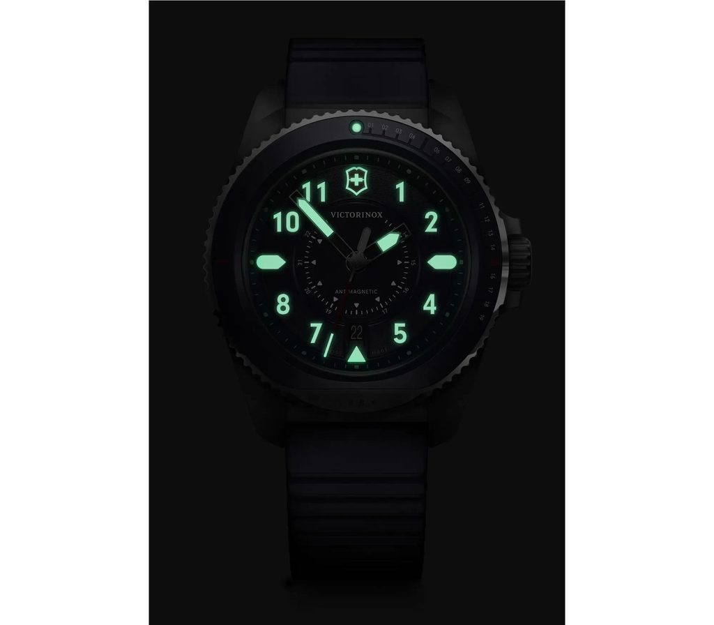 Šroubovací korunka tak ještě lépe chrání strojek, aby se k němu nedostala žádná voda v případě plavání či potápění. Nejenom k délce ponoru můžete využit jednosměrně otočnou lunetu s hliníkovou vložkou a počítací stupnicí. Na číselníku se nachází také vojenský (24hodinový) čas. O perfektní čitelnost se postará Super-LumiNova® která je využita pro osvětlení ruček, čísel a indexů.
