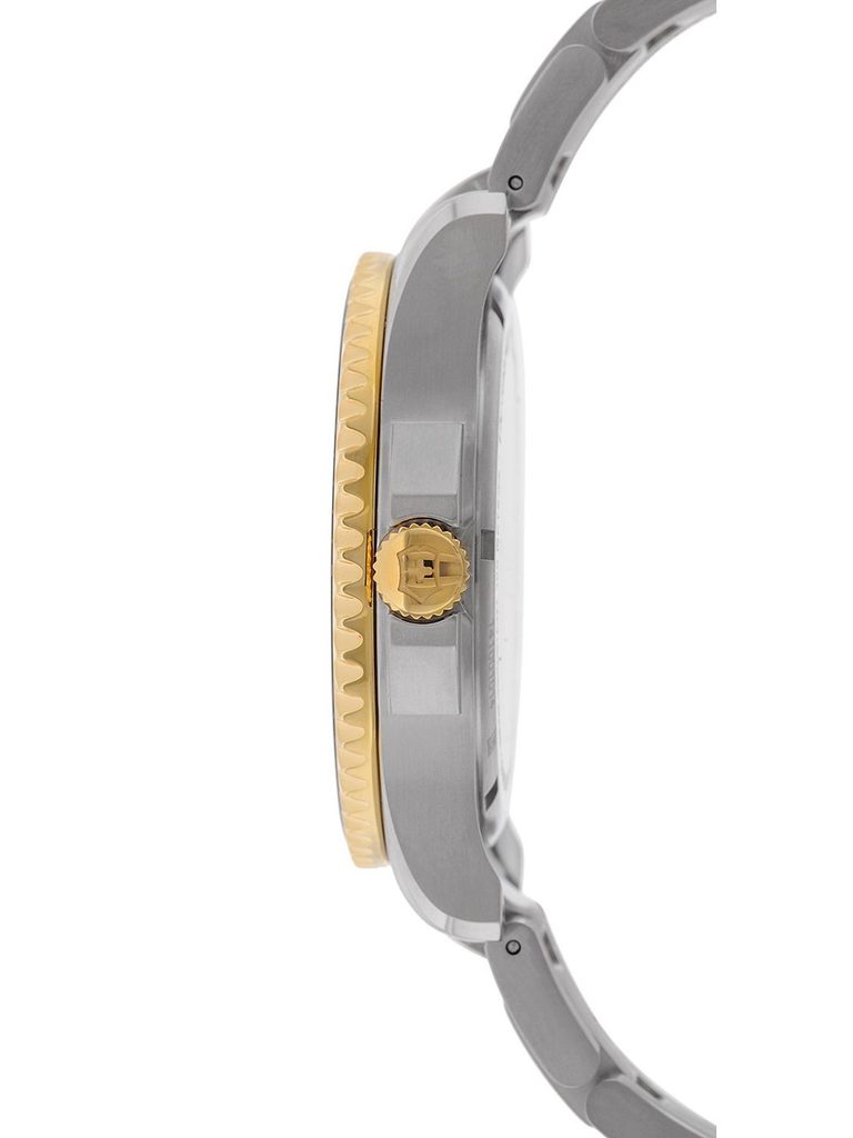 Ciferník vyvedený v šedé barvě zdobí zlaté indexy a ručičky, ty jsou navíc obohaceny o luminiscenční vrstvu zelené barvy, která kontrastuje s bodem na jednosměrně otočné lunetě u pozice "12". Hodinky drží na ruce díky kvalitnímu ocelovému tahu z ušlechtilé oceli. S vodotěsností 100 metrů (10 ATM) nemusíte hodinky sundat z ruky ani při plavání, nebo šnorchlování.