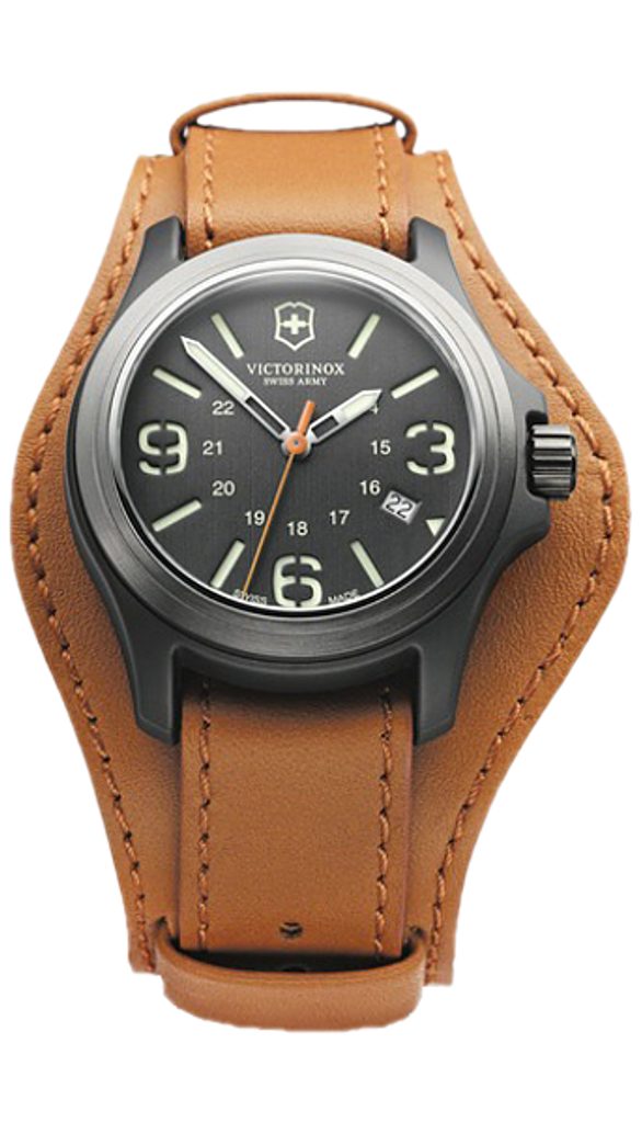 Švýcarské hodinky Victorinox z modelové řady Original s označením 241593 jsou vysoce vodotěsné. Mají quartzový strojek a minerální sklíčko.