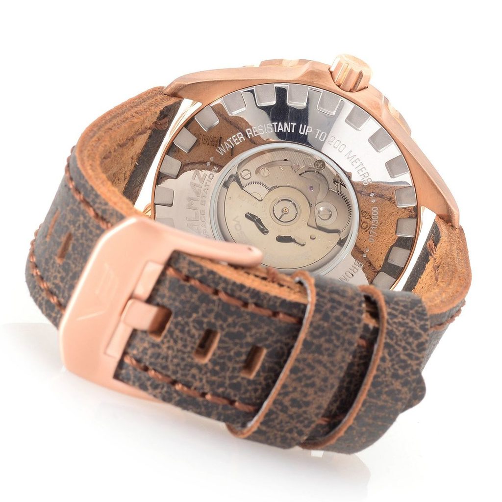 Pánské hodinky Vostok Europe Almaz Bronze Line NH35/320O507 z modelové řady Almaz Space Station. Program Almaz byla série vojenských vesmírných stanic vyslaných do vesmíru Sovětským svazem pod názvem Saljut. Úspěšně obydleny byly dva Almazy – Saljut 3 a Saljut 5. Součástí programu byl vývoj lodí TKS, majících za úkol dopravovat kosmonauty a zásoby na Almazy, nakonec ale kosmonauty na stanice vozily lodě Sojuz. Lodě TKS byly pouze vyzkoušeny v bezpilotním režimu, pilotované lety byly zrušeny.