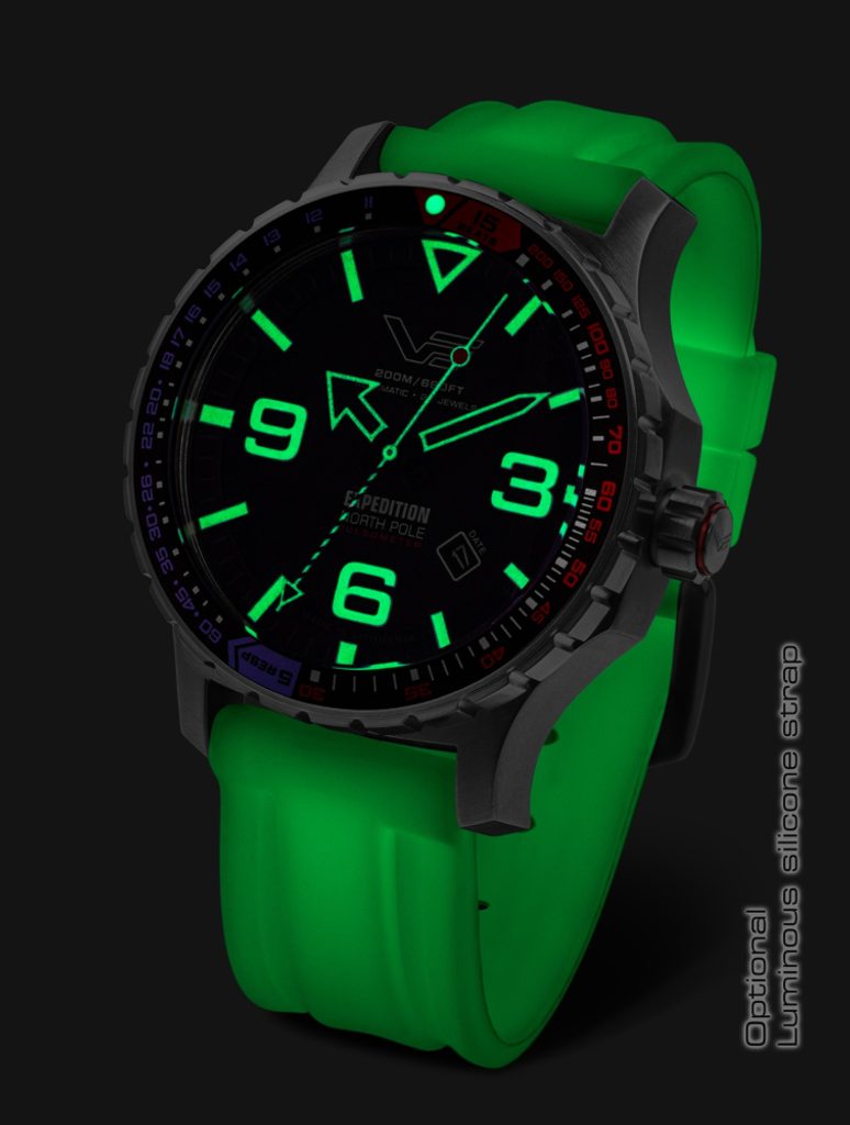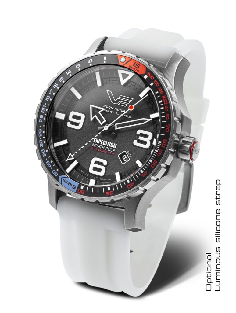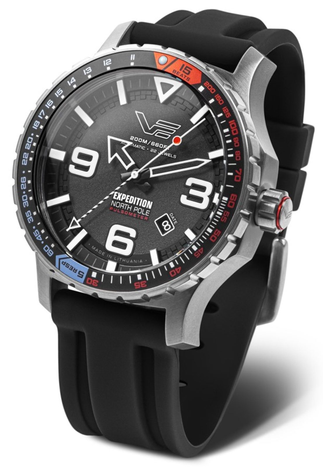 Pánské hodinky Vostok Europe Expedition North Pole Pulsometer Automatic Line YN55-597A729S z modelové řady Expediton North Pole-1 odkazují na první sovětskou plovoucí stanici na ledové kře. Stanice byla v provozu devět měsíců (274 dnů). Kra, na které stanice stála, za tuto dobu urazila 2 850 km a dostala se až k východnímu pobřeží Grónska.