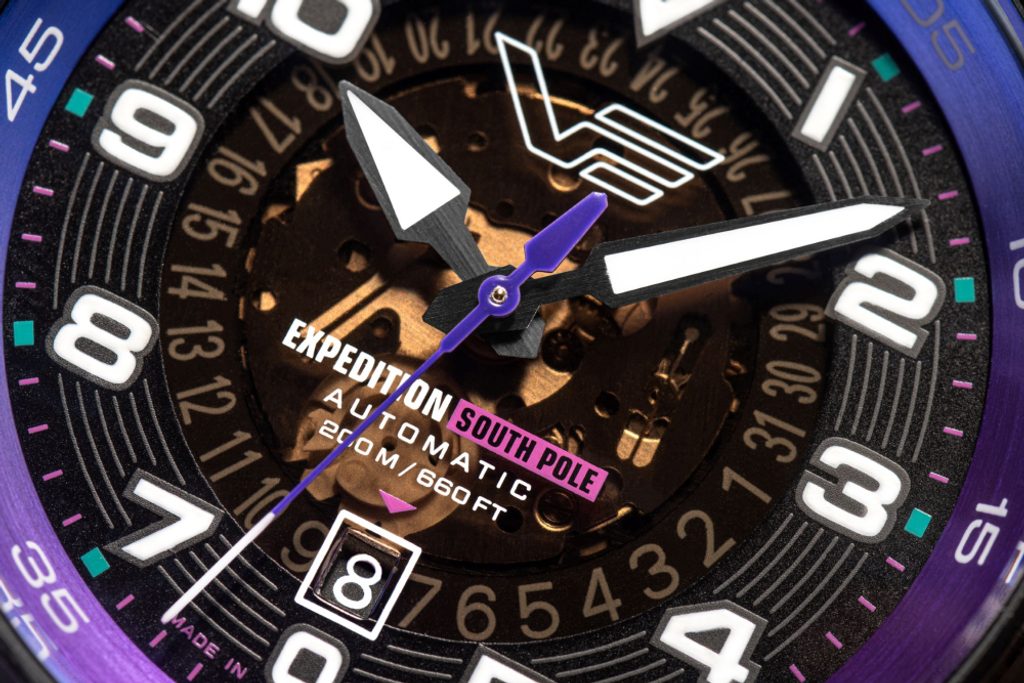 Pouzdro hodinek Vostok Europe Expedition South Pole Automatic Line YN55-592A759 je vyrobeno z ušlechtilé oceli s černou PVD úpravou. Uvnitř se skrývá japonský mechanický strojek s automatickým nátahem S. Epson YN55 a s možností ručního nátahu. Díky částečně průhlednému číselníku si můžeme vychutnat pohled na strojek. Na pozici 6 se nachází praktický ukazatel data. Rezerva chodu činí 40 hodin.