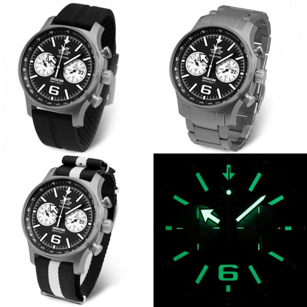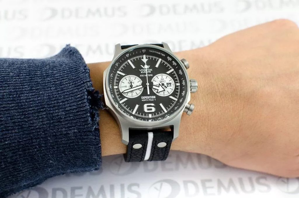 Pánské hodinky Vostok Europe Expediton North Pole-1 Chrono Line 6S21-595A642S z modelové řady Expediton North Pole-1 odkazují na první sovětskou plovoucí stanici na ledové kře. Stanice byla v provozu devět měsíců (274 dnů). Kra, na které stanice stála, za tuto dobu urazila 2 850 km a dostala se až k východnímu pobřeží Grónska.