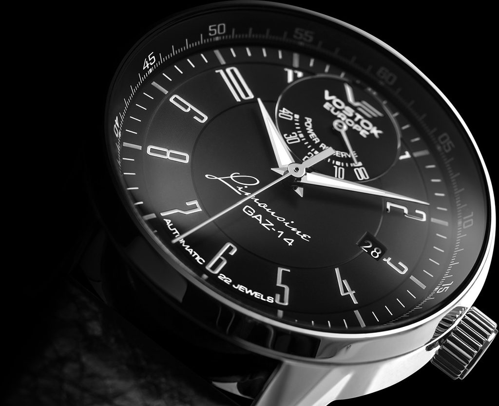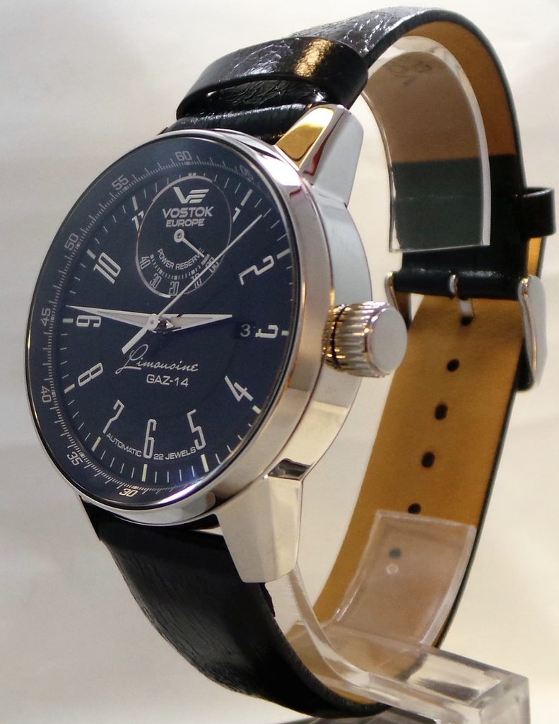 Pánské hodinky Vostok Europe GAZ-14 Limouzine Automatic Power Reserve Indication YN85/560A517 patří do modelové řady GAZ-14 Limousine. GAZ-14 Čajka byl automobil vyráběný závodem Gorkovsky Avtomobilny Zavod (GAZ, Gorky Automobile Plant) v letech 1977 až 1988 jako generace jeho značky Čajka. Na svou dobu vypadal automobil moderně, ve stylu amerických limuzín Cadillac Fleetwood a Lincoln Taunkar.