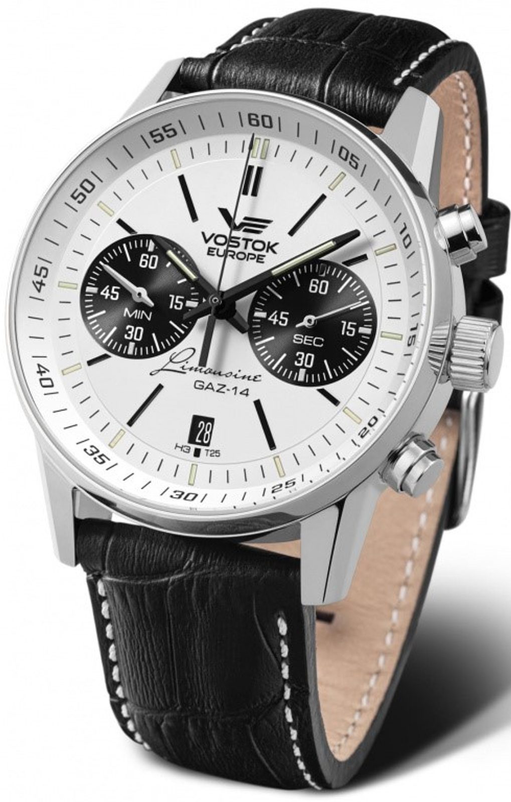 Pánské hodinky Vostok Europe GAZ-14 Limouzine Chrono Tritium 6S21/565A598 patří do modelové řady GAZ-14 Limousine. GAZ-14 Čajka byl automobil vyráběný závodem Gorkovsky Avtomobilny Zavod (GAZ, Gorky Automobile Plant) v letech 1977 až 1988 jako generace jeho značky Čajka. Na svou dobu vypadal automobil moderně, ve stylu amerických limuzín Cadillac Fleetwood a Lincoln Taunkar.