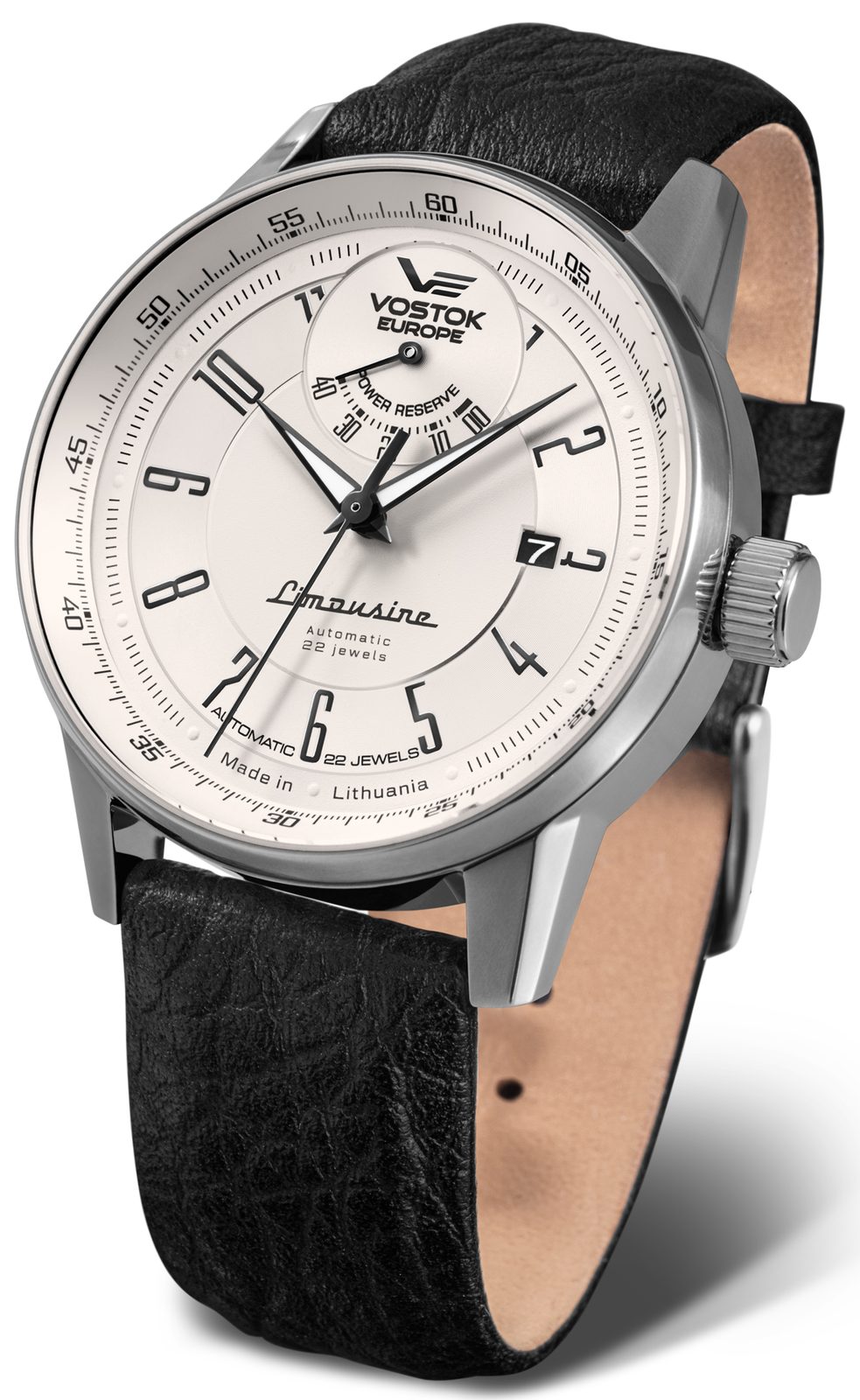 Pouzdro hodinek Vostok Europe Limouzine Automatic Power Reserve Indication YN85/560A517 je vyrobeno z ušlechtilé oceli. Uvnitř najdeme japonský mechanický strojek Seiko Epson YN85 s 22 kameny a s rezervou chodu 40 hodin. Stroje disponuje funkcí hackingu a možností manuálního nátahu. Na pozici 12 najdeme ukazatel rezervy chodu. Ukazatel data se nachází na tradiční pozici 3.