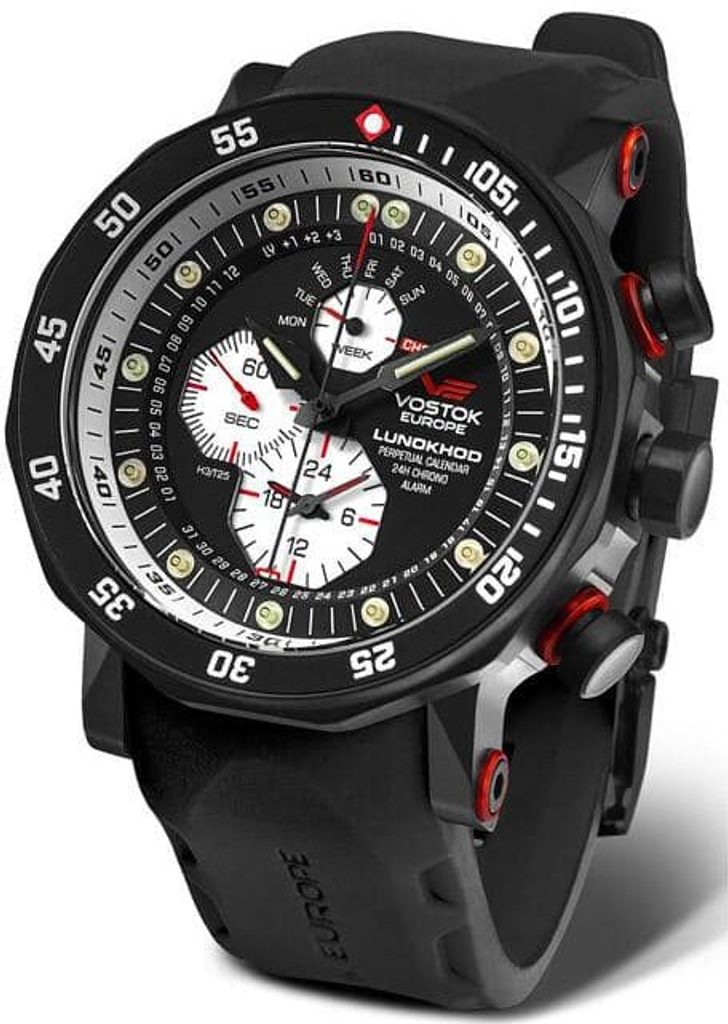 Pouzdro hodinek Vostok Europe Lunochod-2 Multifuncional Line YM86/620C635 je vyrobeno z ušlechtilé oceli s černou PVD úpravou. Uvnitř se skrývá bateriový japonský strojek S.EPSON YM86. Subciferník na pozici 12 zobrazuje aktuální den v týdnu. Centrální ručka s vidlicí na konci slouží jako ukazatel aktuálního dne v měsíci. Číselná škála na hlavním číselníku je rozdělena do tří sektorů: v poloze 0-36 minut je sektor dnů v měsíci, v poloze 38-52 minut je sektor měsíců a v poloze 54-58 minut je sektor let (čtyřletý cyklus s přestupným rokem). Hodinky dále disponují funkcí stopek, budíku a jednosměrnou otočnou lunetou. Dále disponují i heliovým ventilem.