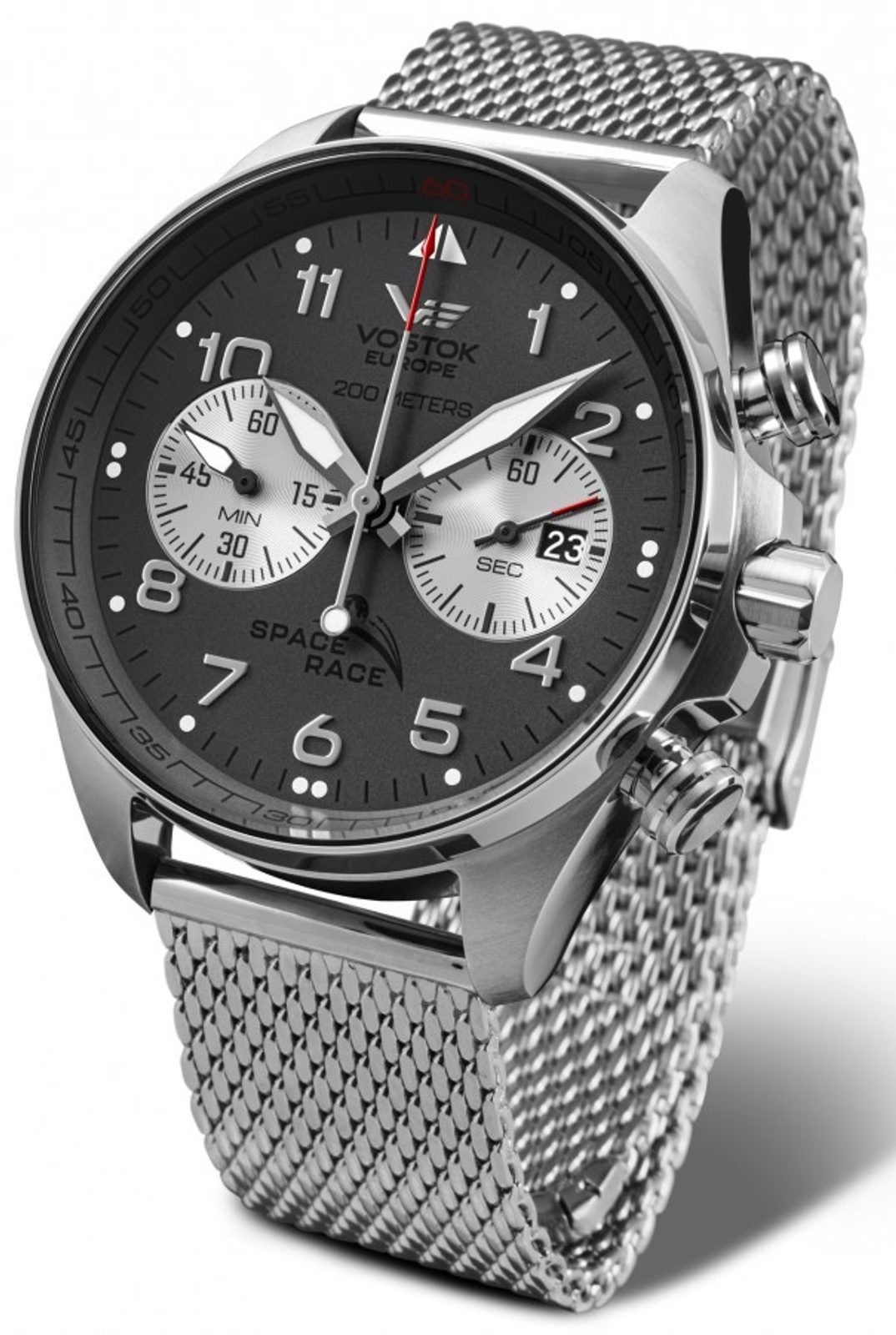 Pánské hodinky Vostok Europe Space Race Chrono Line 6S21-325A666B patří do modelové řady Space Race. SSSR a USA soutěžilo o převahu v kosmických letech. Začalo to vypuštěním umělé družice v roce 1957, pokračovalo robotickými vesmírnými sondami k Měsíci, Venuši a Marsu, což vyvrcholilo vysláním lidí na oběžnou dráhu Země a nakonec na Měsíc. Vesmírná mise Apollo-Sojuz z roku 1975 byla symbolem spolupráce mezi oběma stranami a ukončením vesmírného závodu.