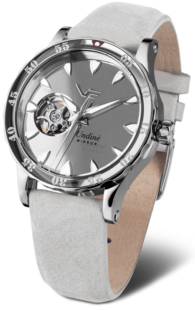 Pouzdro hodinek Vostok Europe Undine Mirror NH38-515A765 je vyrobeno z ušlechtilé oceli. Uvnitř spolehlivě pracuje japonský mechanický strojek NH38 s automatickým nátahem a možností ručního nátahu. Činnost strojku můžete pozorovat díky průhledu v číselníku (tzv. open heart).