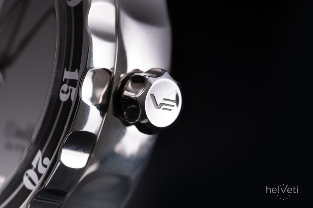 Číselník s průměrem 39 mm je vyroben ze zrcadlově leštěného kovu - jeho hladký, reflexní povrch vytváří působivý vizuální efekt. Chrání jej tvrzené minerální sklíčko K1 s vnitřní antireflexní úpravou. Díky voděodolnosti 200 m jsou hodinky vhodné pro plavání, potápění či různé vodní sporty.