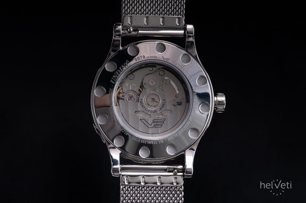 Pouzdro hodinek Vostok Europe Undine Mirror NH38-515A765B je vyrobeno z ušlechtilé oceli. Uvnitř spolehlivě pracuje japonský mechanický strojek NH38 s automatickým nátahem a možností ručního nátahu. Činnost strojku můžete pozorovat díky průhledu v číselníku (tzv. open heart).