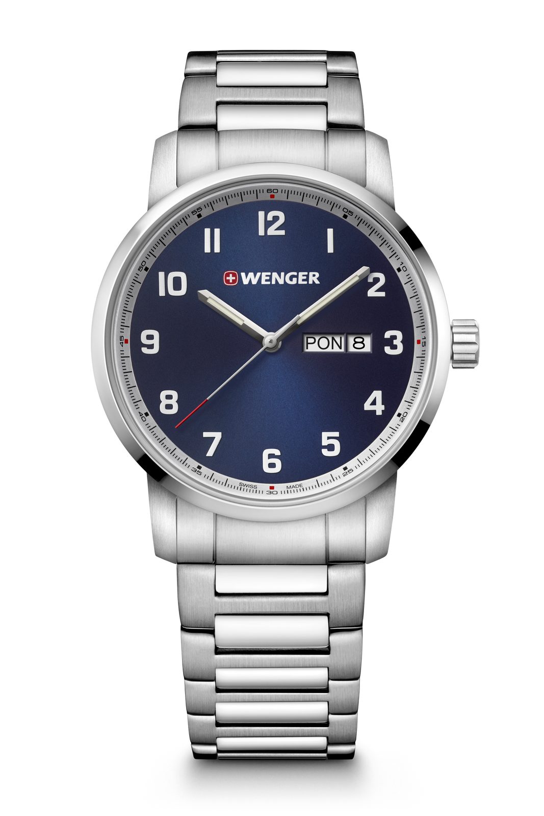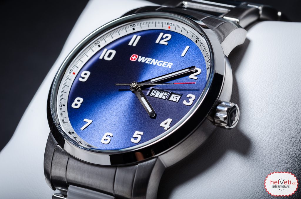 Bytelné leštěné ocelové pouzdro vyrobené z ušlechtilé oceli zaručuje vysokou odolnost a bezpečné uložení Švýcarského strojku Ronda 517. Na ciferníku se nachází reliéfní číslice, které na sobě mají vrstvu luminiscence. Ta je dále obsažena i na hodinové a minutové ručičce. Vteřinová ručka s červeným zakončením pak skvěle ladí s červeným znakem Wenger, který již před pár lety ustoupil číslu 12. Ciferník je doplněn o ukazatel data včetně dne v týdnu a to v českém a slovenském jazyce. Na vnitřní lunetě se pak elegantně „schovávají“ indexy po pěti minutách a neruší tak celkový čistý vzhled hodinek. Sklo ciferníku hodinek je vyrobeno z minerálního sklíčka se safírovou vrstvou tzv. sapphire coated.