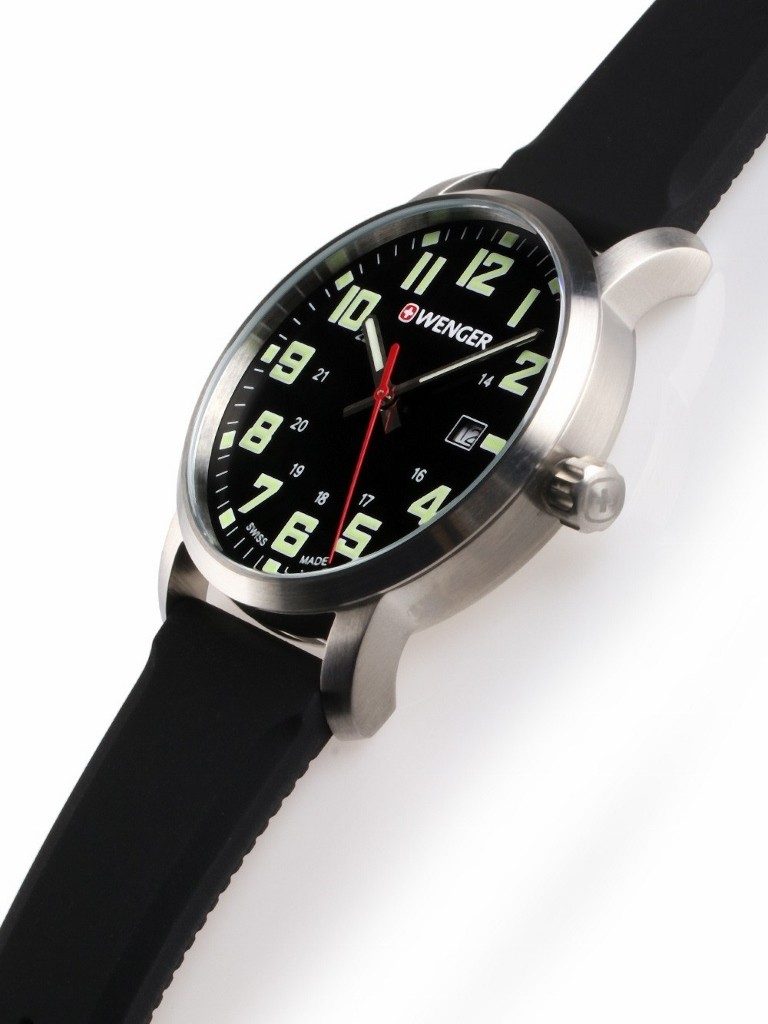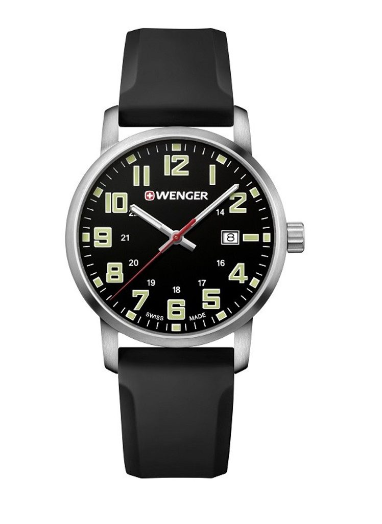 Pánské hodinky Wenger Avenue 01.1641.110 jsou novinkou roku 2017. Řada hodinek Avenue je určena pro sportovní výkony, samozřejmostí je také městský design hodinek, díky kterému lze hodinky nosit denně. Ciferník hodinek navíc obsahuje vojenský čas, datum a je chráněn minerálním sklíčkem se safírovým povlakem. Perfektní čitelnost i v noci pak oceníte díky luminiscenčním ručičkám a indexům. Vodotěsnost tohoto modelu je 10 ATM.