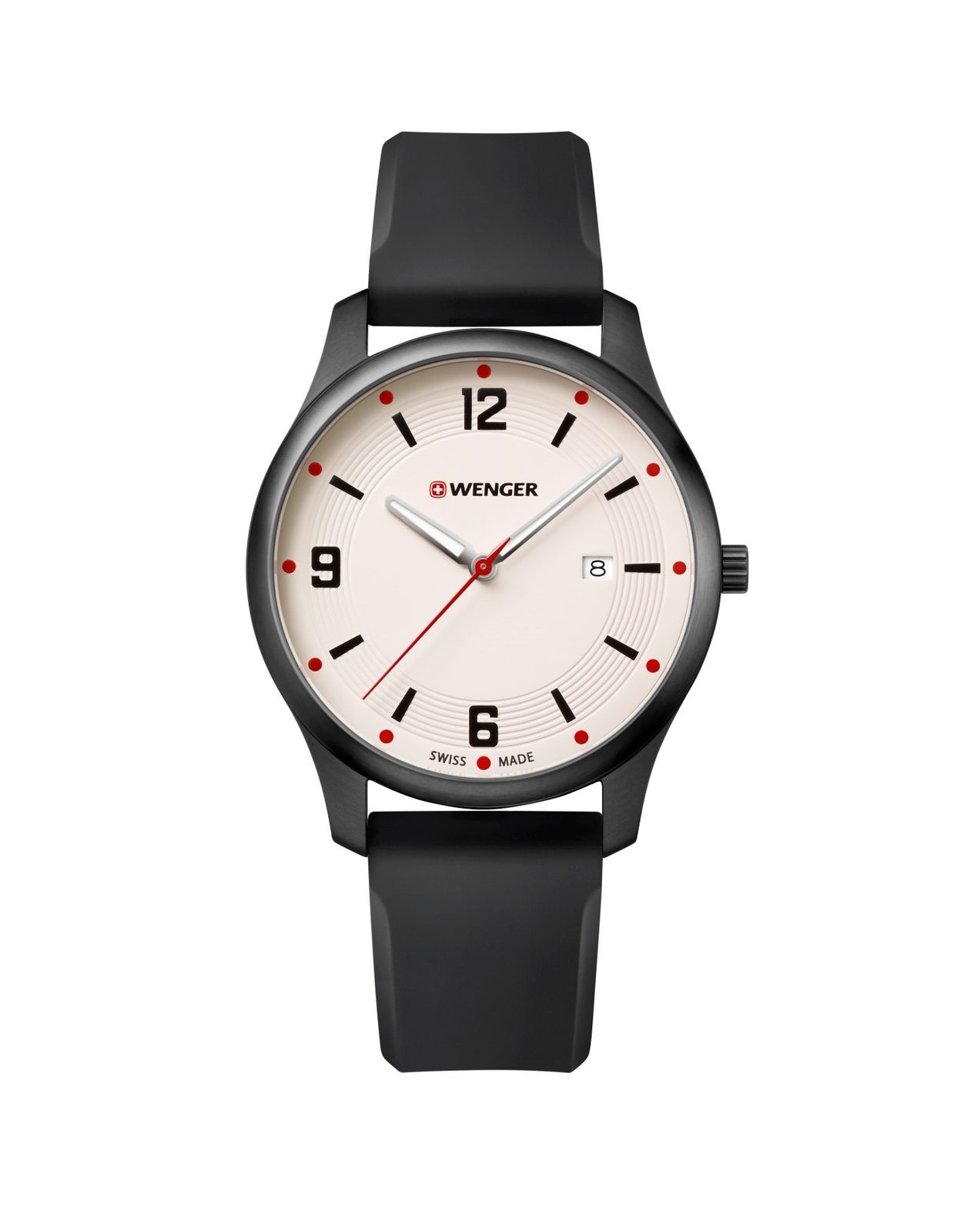 Pánské hodinky Wenger City Active 01.1441.123 jsou novinkou roku 2018. Hodinky drží na ruce díky silikonovému řemínku. Ciferník hodinek chrání minerální sklo se safírovou úpravou. Na třetí pozici se nachází ukazatel data. Perfektní čitelnost i v noci pak oceníte díky luminiscenčním ručičkám. Model dále disponuje pouzdrem černěným PVD úpravou a vodotěsností 30 metrů (určeno ke sprchování).