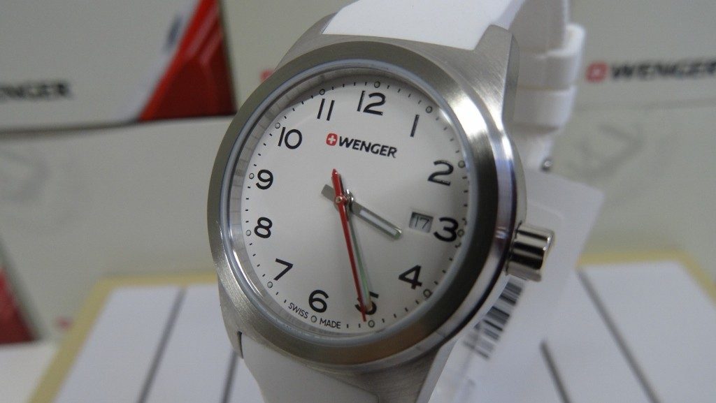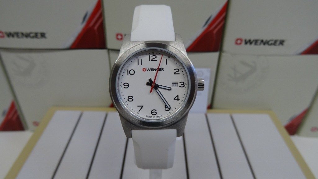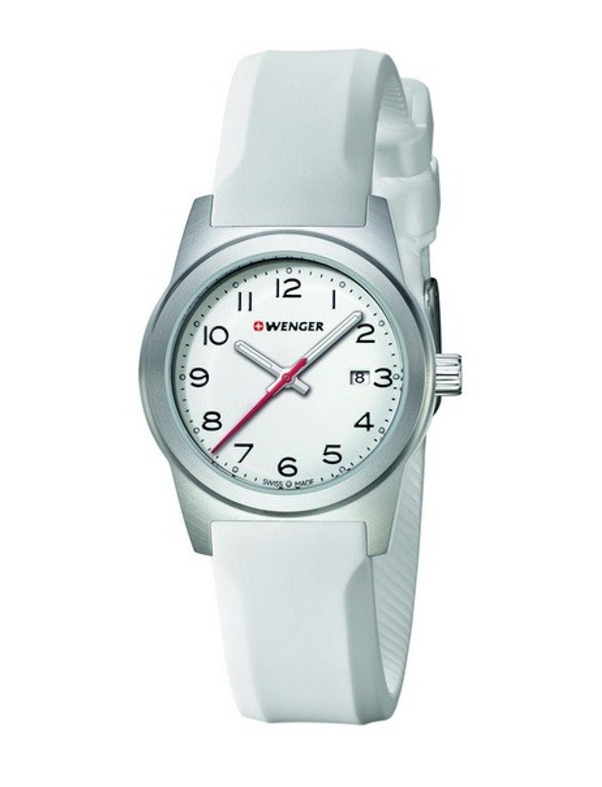 Dámské náramkové hodinky jsou novinkou roku 2015. Modelová řada Wenger Field Color přináší nové varianty hodinek, jak pro dámy, tak pány, kteří milují designově pestré kombinace barev. Pouzdro je vyrobeno z oceli a minerální sklíčko má na sobě safírovou vrstvu. Hodinky drží na ruce díky silikonovému řemínku a disponují ukazatelem data, který se nachází na pozici třetí hodiny.
