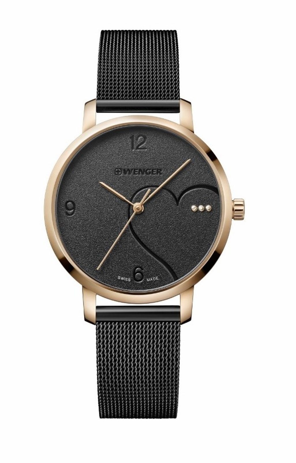 Dámské náramkové hodinky z nově představené modelové řady Metropolitan Donnissima. Hodinky Wenger Metropolitan Donnissima 01.1731.113 se hodí na každodenní nošení ale i do společnosti. Ciferník Vás na první pohled zaujme třemi Swarovski kamínky na pozici třetí hodiny. Hodinky disponují ocelovým pouzdrem a jemně tkaným mesh náramkem s PVD úpravou. Vodotěsnost tohoto modelu je 100m. V této modelové řadě oceníte minerální sklíčko potažené safírovým povlakem.