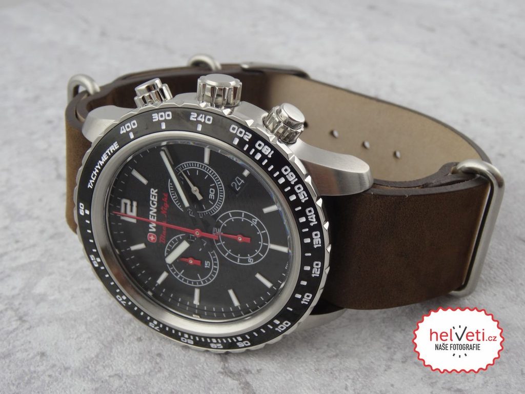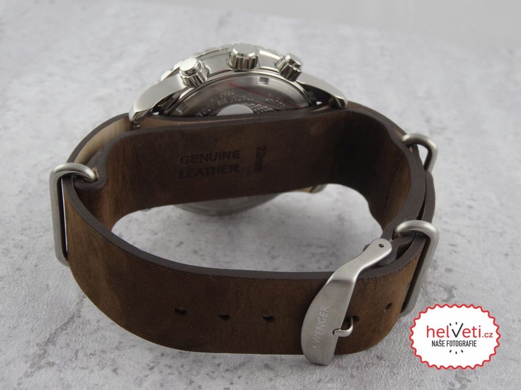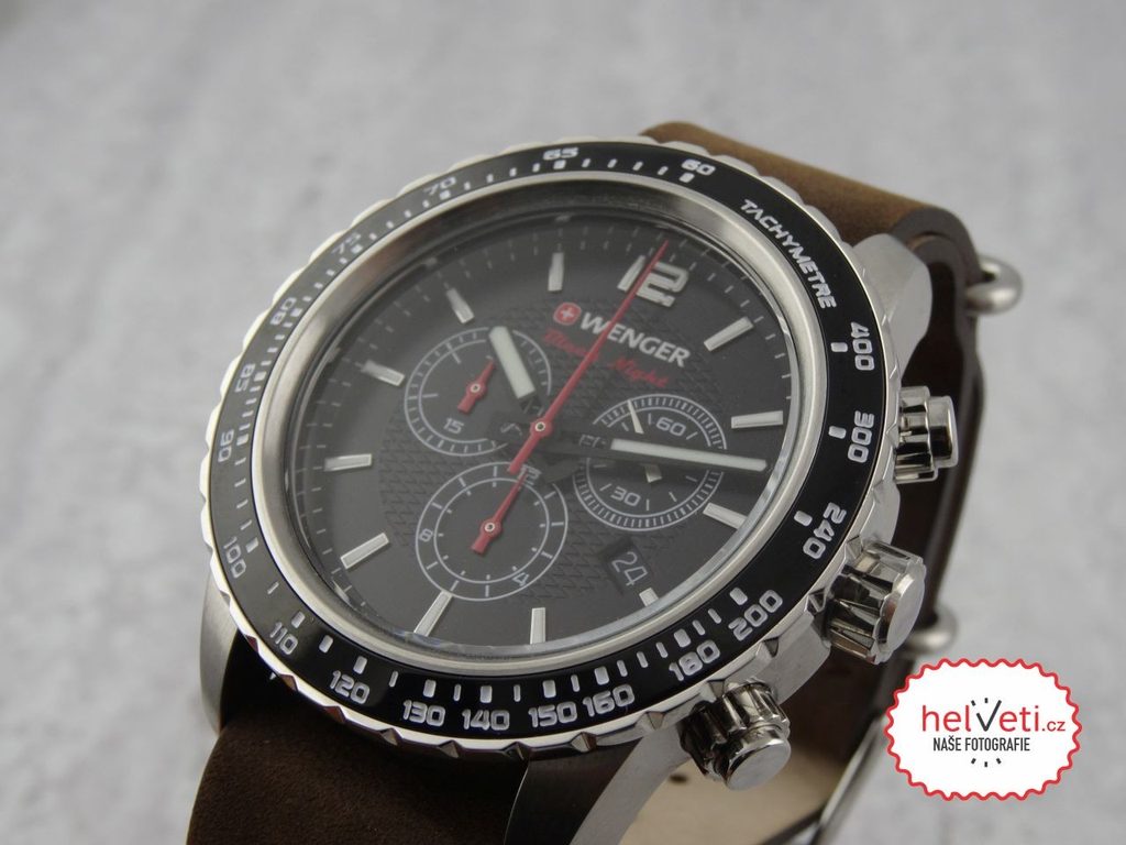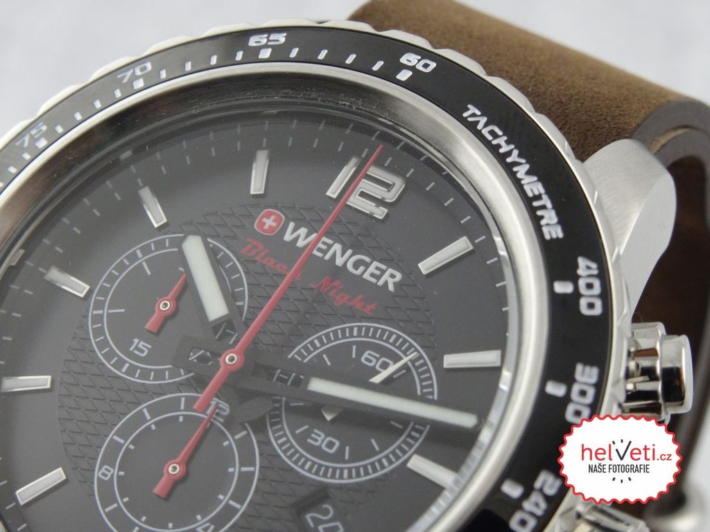 Pánské hodinky Wenger Roadster Black Night Chrono 01.0853.106 přináší svěží vítr do stávající řady Roadster. Hodinky drží na ruce díky kvalitnímu koženému řemínku hnědé barvy, který zaujme dvojím provlečením k pouzdru hodinek. Ciferník, jenž je chráněn minerálním sklem se safírovou úpravou zaujme velmi elegantním, přehledným provedením. Na čtvrté pozici se nachází ukazatel data. Model dále disponuje stopkami a tachymetrem.