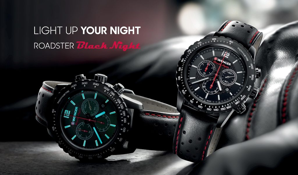 Pánské hodinky Wenger Roadster Black Night Chrono 01.0853.107 jsou podzimní novinkou roku 2015 a přináší tak svěží vítr do stávající řady Roadster. Hodinky drží na ruce díky kvalitně zpracovanému ocelovému tahu. Ciferník, jenž je chráněn minerálním sklem se safírovou úpravou zaujme velmi elegantním, přehledným provedením. Na čtvrté pozici se nachází ukazatel data. Model dále disponuje stopkami a tachymetrem.