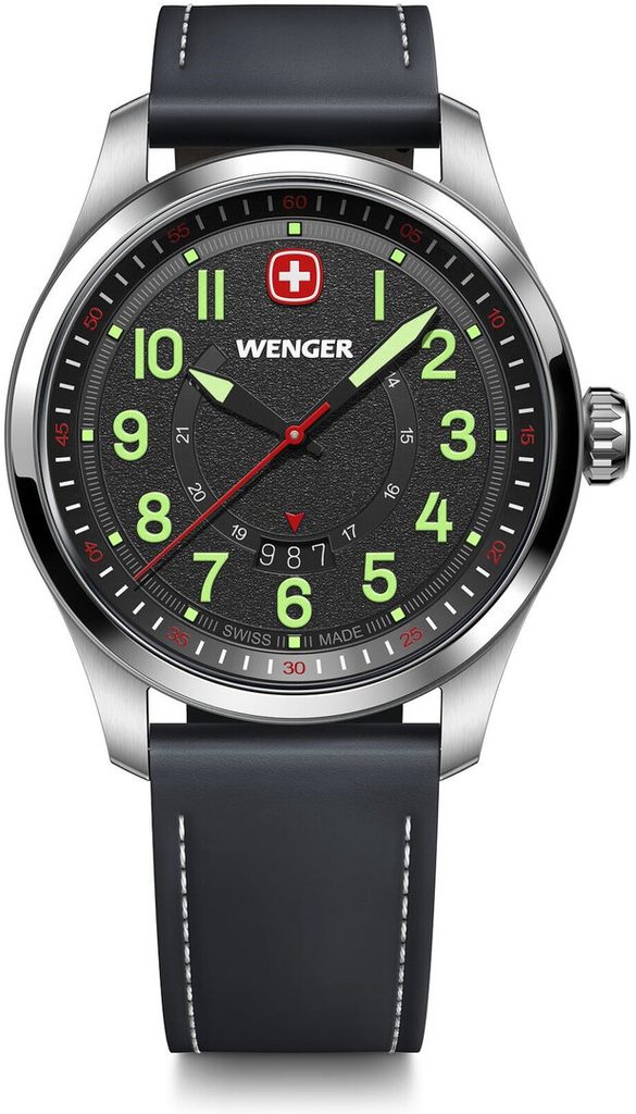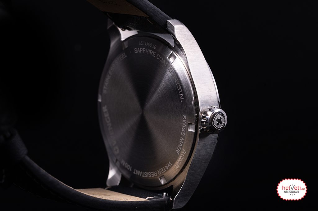 Hodinky budou držet na Vašem zápěstí díky koženému řemínku. Snadnou výměnu řemínků zajišťuje systém uchycení pomocí rychlostěžejek. Za zmínku také stojí vygravírovaná signovaná korunka se Švýcarským křížem umístěna klasicky na pravé straně pouzdra. Jak již jsme u Wengeru zvyklí, i zde se myslí na praktickou stránku věci, a hodinky tedy mají vodotěsnost 10 ATM. Díky této vodotěsnosti se s hodinkami nemusíte jít bát zaplavat.