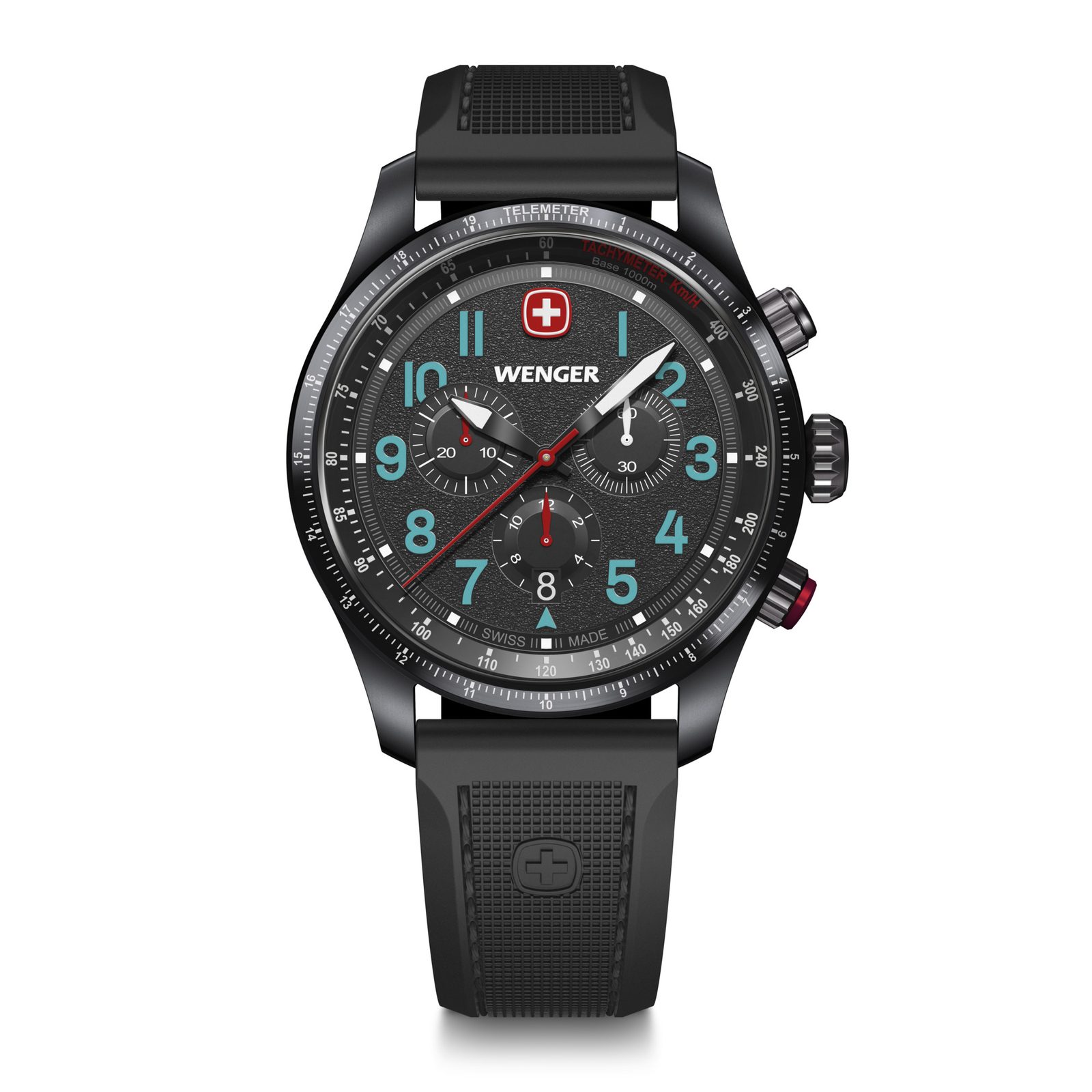 Hodinky budou držet na Vašem zápěstí díky silikonovému řemínku. Snadnou výměnu řemínků zajišťuje systém uchycení pomocí rychlostěžejek. Za zmínku také stojí vygravírovaná signovaná korunka se Švýcarským křížem umístěna klasicky na pravé straně pouzdra. Jak již jsme u Wengeru zvyklí, i zde se myslí na praktickou stránku věci, a hodinky tedy mají vodotěsnost 10 ATM. Díky této vodotěsnosti se s hodinkami nemusíte jít bát zaplavat.