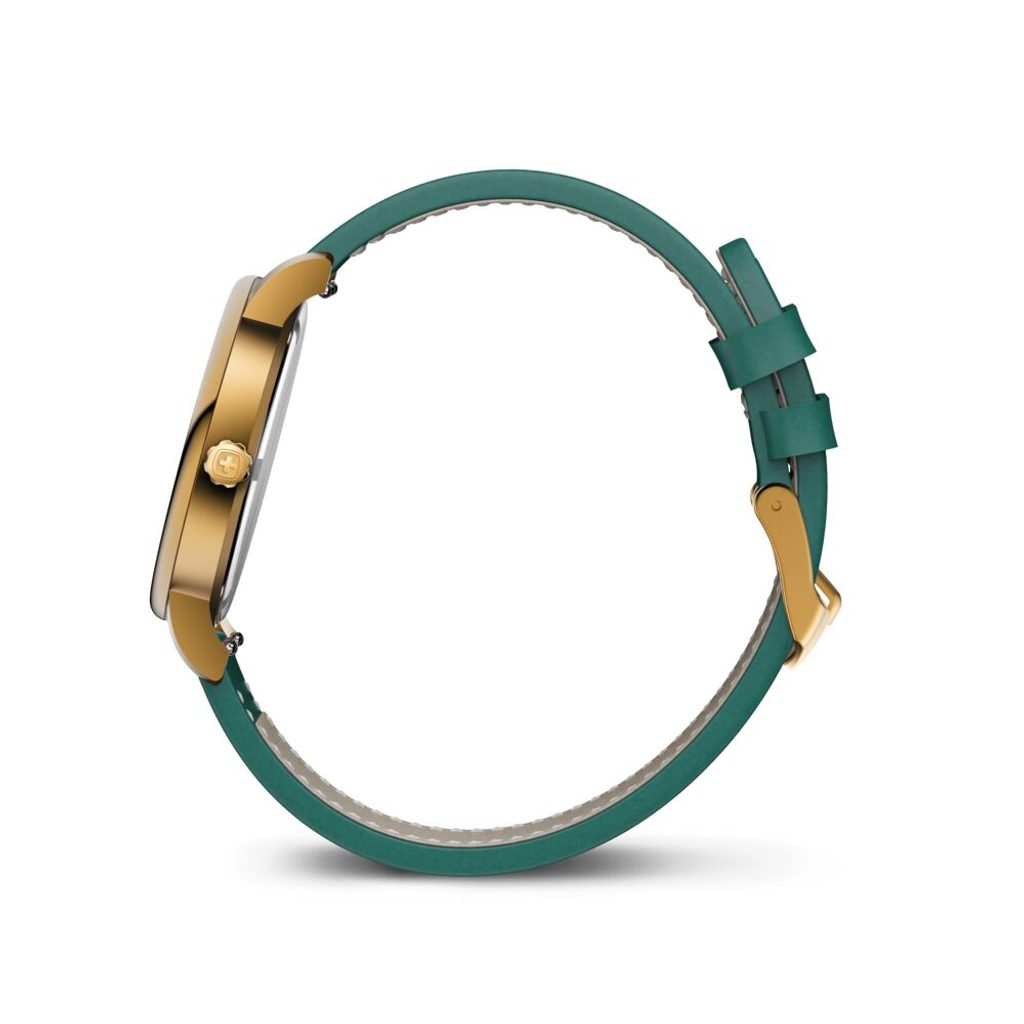 Hodinky disponují ocelovým, kartáčovaným pouzdrem zlaceným pomocí PVD úpravy. Vodotěsnost tohoto modelu je 100m, což je na takto elegantní model nadstandartní záležitost. V této cenové kategorii oceníte minerální sklíčko potažené safírovou vrstvou. Řemínek vyvedený v barvě ciferníku pak skvěle doplňuje celkový dojem z hodinek. Záruka je 5letá.