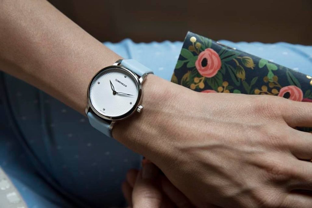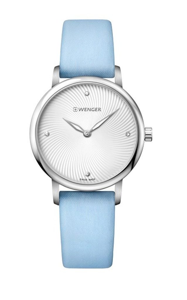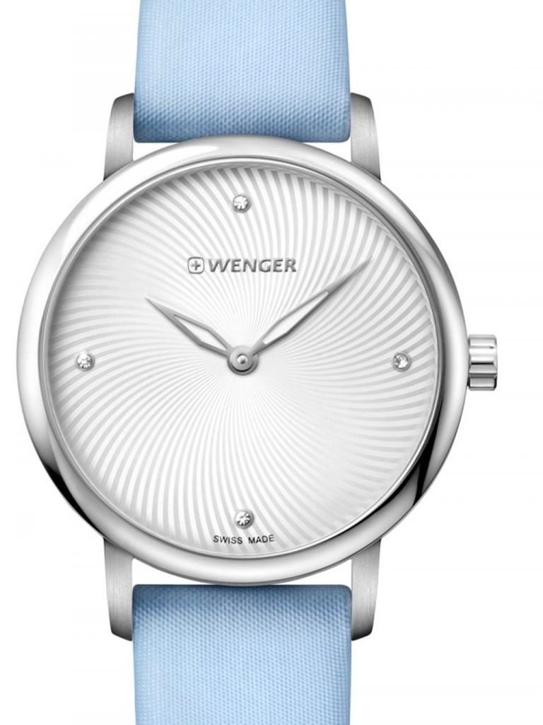 Dámské náramkové hodinky z nově představené modelové Urban Donnissima. Hodinky Wenger Urban Donnissima 01.1721.108 se hodí na každodenní nošení ale i do společnosti. Ciferník Vás na první pohled zaujme plastickým zpracováním. Hodinky disponují ocelovým pouzdrem a luminiscenčními ručičkami. Vodotěsnost tohoto modelu je 100m. V této cenové kategorii oceníte minerální sklíčko potažené safírovou vrstvou. Řemínek ve světlé modré barvě skvěle padne k bílému ciferníku, na kterém se nacházejí 4 Swarovski krystaly.