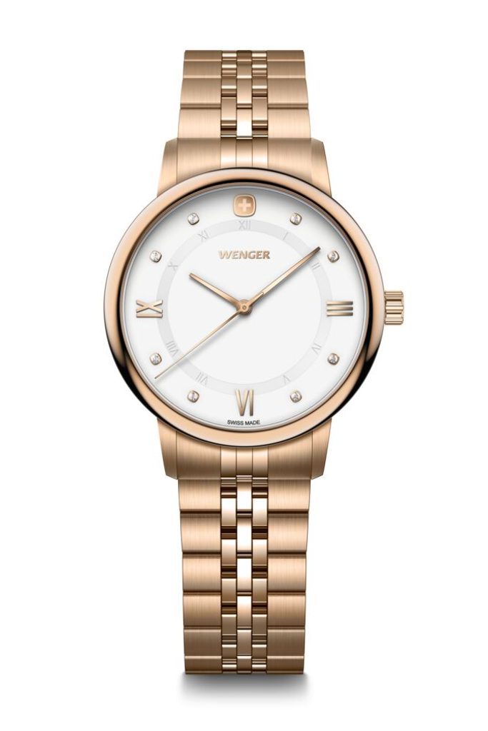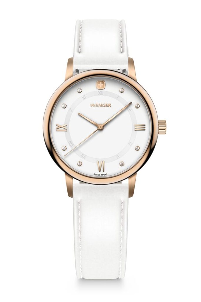 Dámské náramkové hodinky z čistě dámské modelové řady Urban Donnissima. Hodinky Wenger Urban Donnissima 60.1721.119 se hodí na každodenní nošení ale i do společnosti. Ciferník Vás na první pohled zaujme plastickým zpracováním a osazením 8 krystaly Swarovski®.