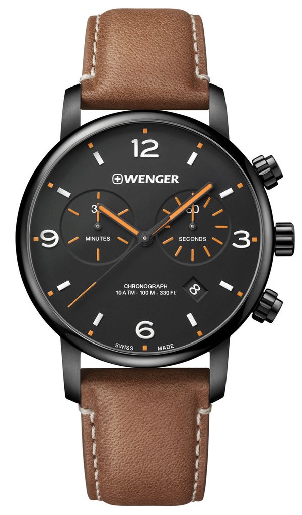 Pánské náramkové hodinky Wenger Urban Metropolitan Chrono 01.1743.113 mají pouzdro vyrobeno z kvalitní oceli s černou PVD úpravou. Jejich hlavní předostí je precizně zpracovaný ciferník, kterému dominují 2 subciferníky pro potřeby stopek a vteřinové ručky.