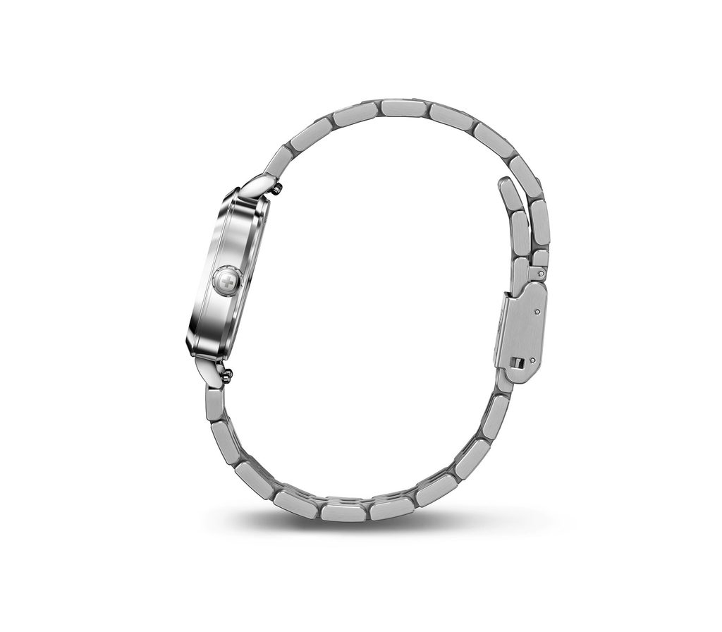 Hodinky budou držet na Vašem zápěstí díky ocelovému náramku, který je vyroben z ušlechtilé oceli. Snadnou výměnu řemínků zajišťuje systém uchycení pomocí rychlostěžejek. Za zmínku také stojí signovaná korunka se Švýcarským křížem umístěna klasicky na pravé straně pouzdra. Vodotěsnost těchto elegantních hodinek je 5 ATM. Díky této vodotěsnosti hodinky snesou letmý kontakt s vodou, který můžeme přirovnat například ke stříkající vodě, dešti apod.