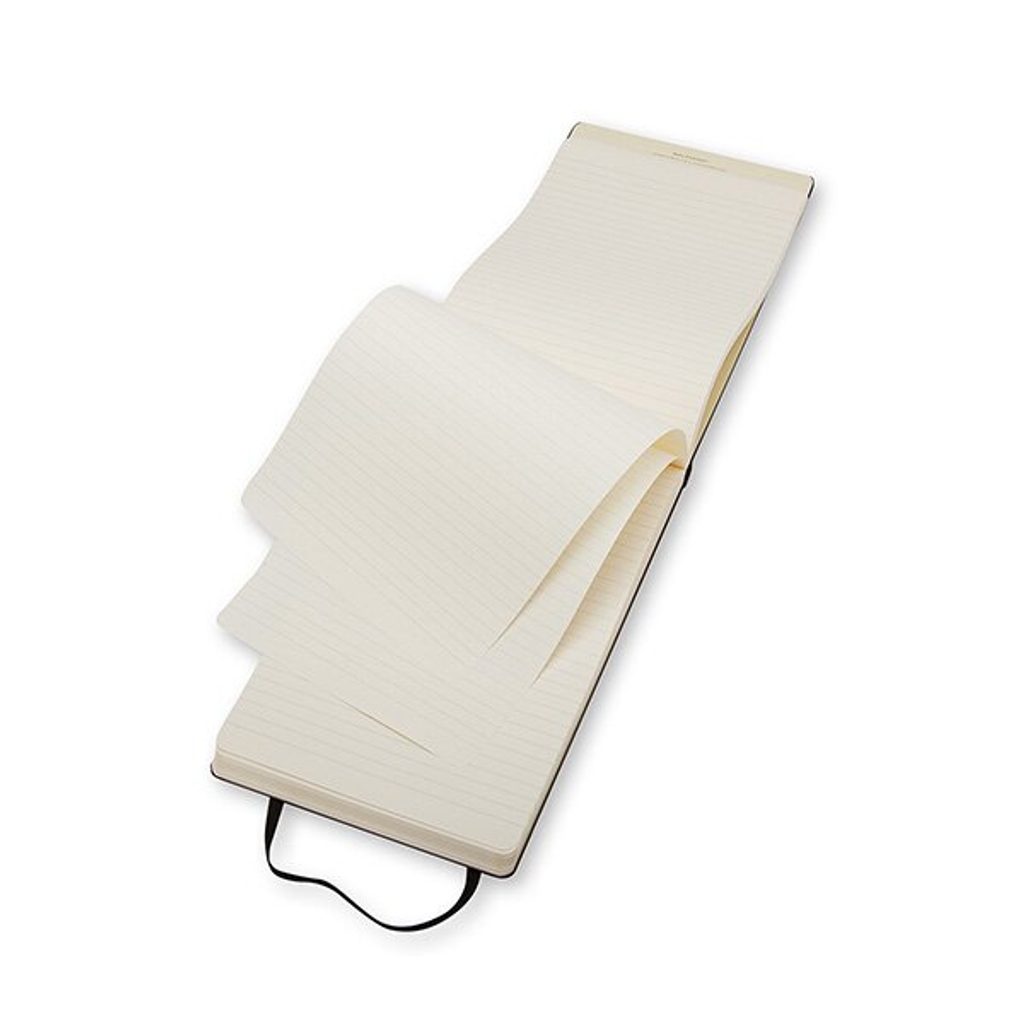 Zápisník má pevnou, v horním hřbetu šitou vazbu v kartonových deskách a je obepnutý pružnou páskou proti samovolnému otevírání. Posledních 12 listů je možné díky perforaci snadno vytrhnout. Nechybí ani praktická kapsa, která je vyrobená z tkaniny a kartonu a leták s historií MOLESKINE. Papír s gramáží 70 g/m² neobsahuje žádné kyseliny.