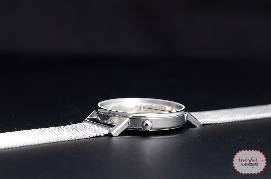 Pouzdro, vyrobené z ušlechtilé oceli v sobě skrývá švýcarský bateriový strojek ETA F06.111, který disponuje funkcí ukazatele data na tradiční pozici 3. S vodotěsností do 50 metrů se nemusíte bát ani běžného kontaktu s vodou jako je například sprchování, mytí rukou apod.