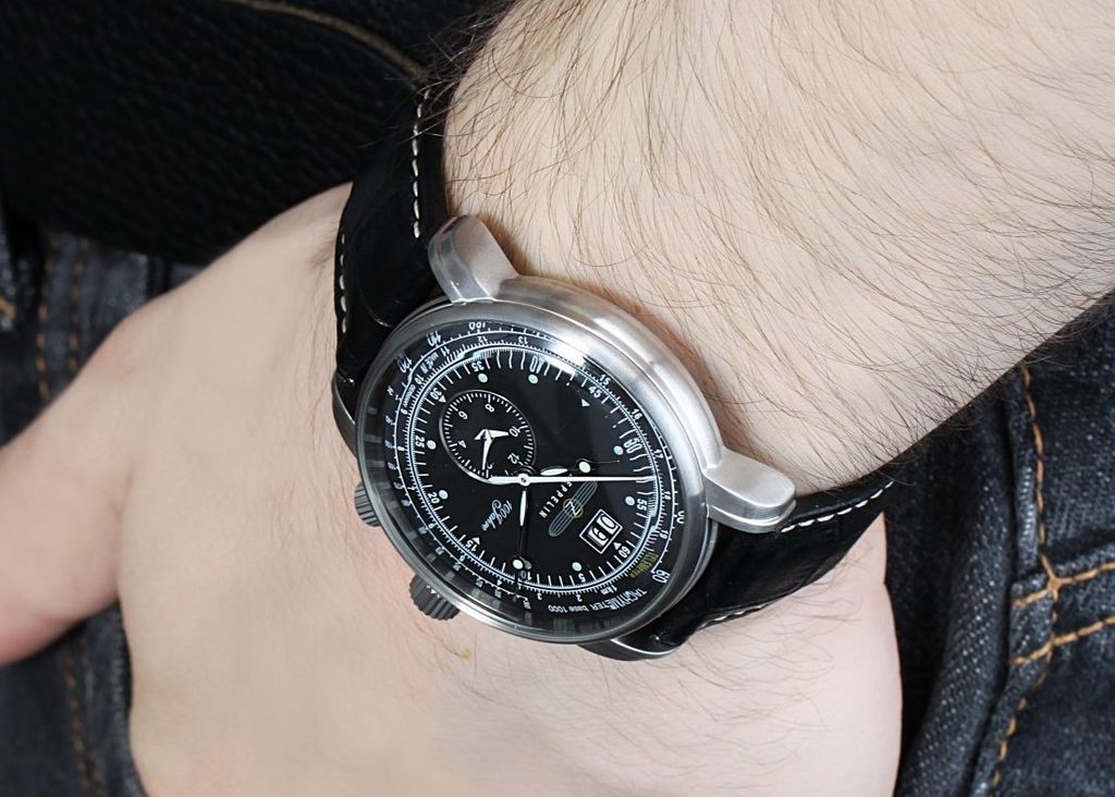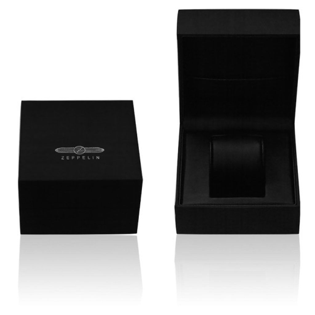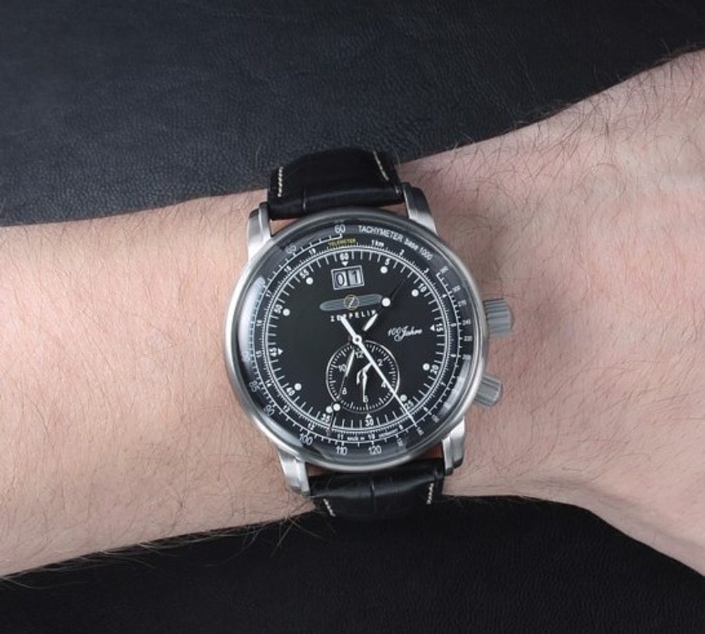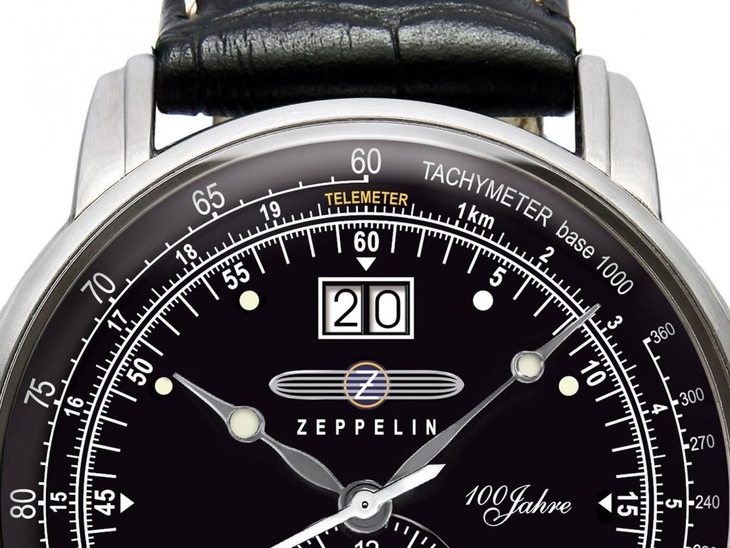 Hodinky Zeppelin 7640-2 patřící do modelové řady 100 Years Zeppelin Ed. 1 nabízí velký ukazatel data na 12. pozici a možnost nastavení druhého světového času v subciferníku na 6. hodině. Telemetr, jenž je k vidění po vnitřní lunetě hodinek, slouží pro měření vzdálenosti. Měření funguje na základě rychlosti zvuku.