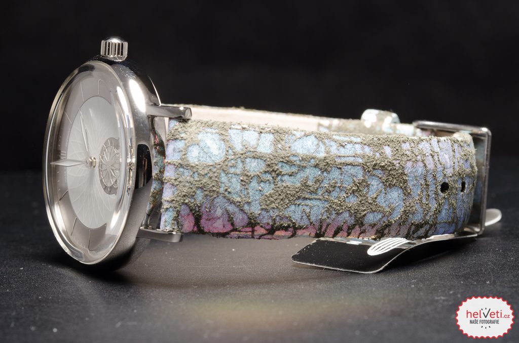 Osobitému číselníku dominuje nádherný Mandala ornament a ručky, kterým jejich minimalistický vzhled nijak neubírá na dobré čitelnosti. Ocelové pouzdro v sobě skrývá švýcarský bateriový strojek Ronda 1069, který disponuje mimostřednou sekundovou ručkou, vyvedenou v květinovém Mandala stylu.